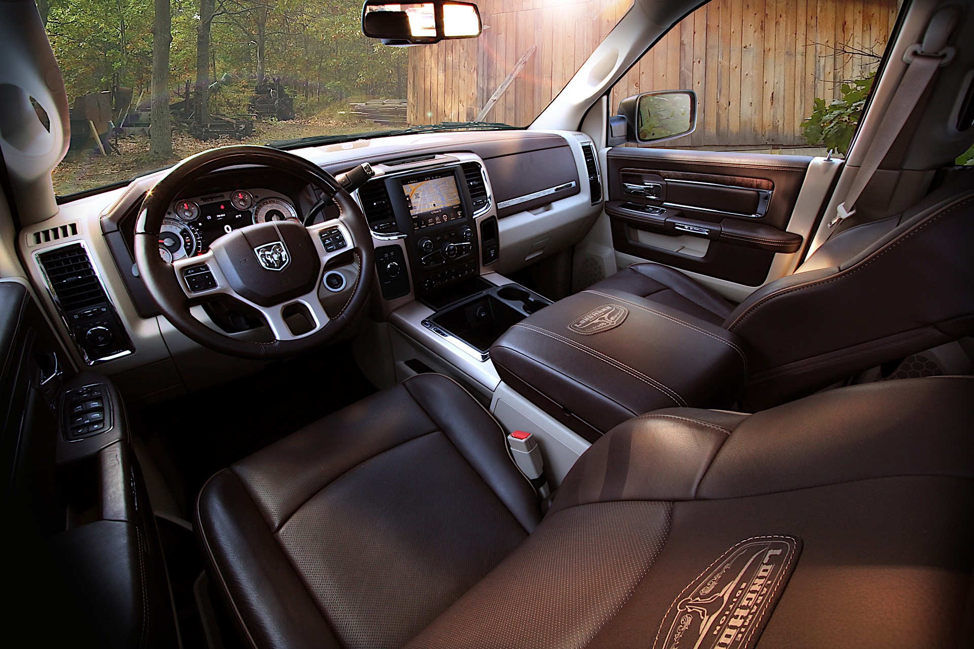 The Ram Rodeo trim is based on the Longhorn trim, meaning it’s a luxury truck inside and out. Real materials, such as wood and steel are used throughout the cabin, and even cowboy-style buckles can be found in the rear seat map pockets. All that heft is supported by 20-inch aluminum wheels with optional painted pockets on the Ram 2500/3500 single-rear-wheel trucks, while Ram 3500 dual-rear-wheel trucks receive 17-polished aluminum wheels. Lastly, Longhorn badging adorns the muscular exterior, including a tailgate badge that appears to extend from El Paso to Houston.