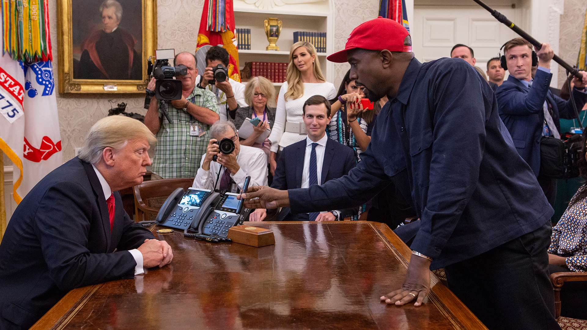 West continued to condemn made-in-China products, unlocking his iPhone (with the password being all zeros) to show the president the newest American-made idea to replace his aging Air Force One.