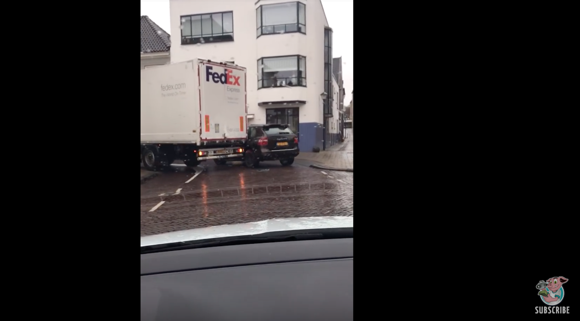 When a Porsche Cayenne is parked where it shouldn’t be, a FedEx truck pushes the car out of the way. Is the truck driver a crusader of traffic? Or just a jerk looking to damage a nice car?