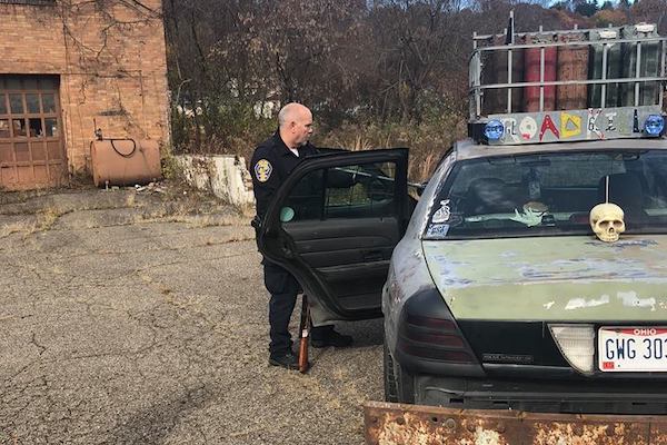 According to a social media post by law enforcement of East Liverpool, Ohio, the department responded to a call from a concerned citizen who spotted a suspicious individual poking around an abandoned property owned by a local florist. Officers that arrived on the scene found a Ford Crown Victoria with a faded police livery and an individual with “a very large knife,” whom they took into custody before commencing a search of the vehicle.
