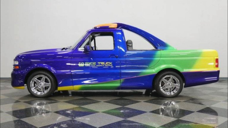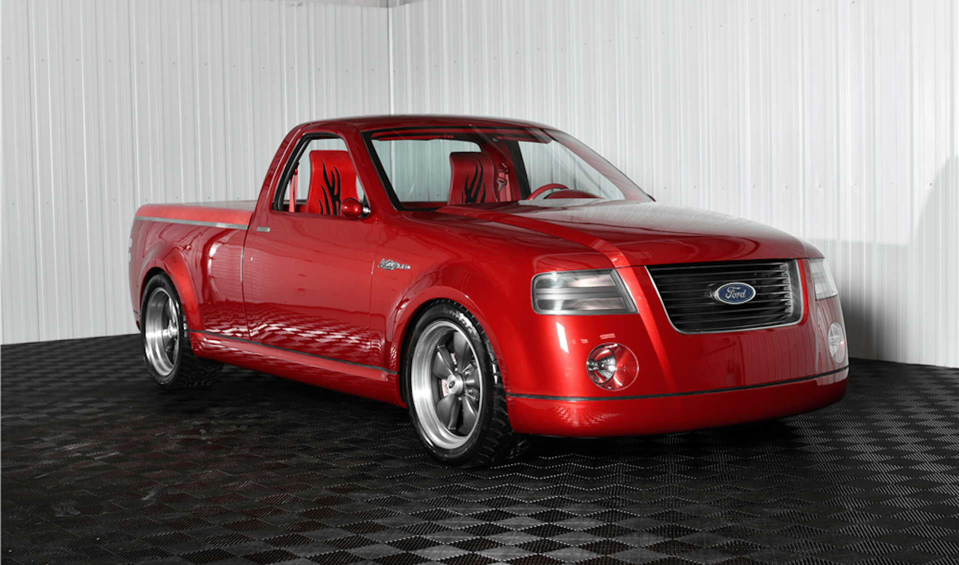 The truck itself is visually very different from the one that came off the production line back in the day. It was built to cater to the retro-rage of the late 1990s and early 2000s, much like the Chrysler PT Cruiser. Heck, it’s even got a tribal pattern in the seats and on the tire tread. Has someone made Mike Tyson aware of this? We certainly hope so.