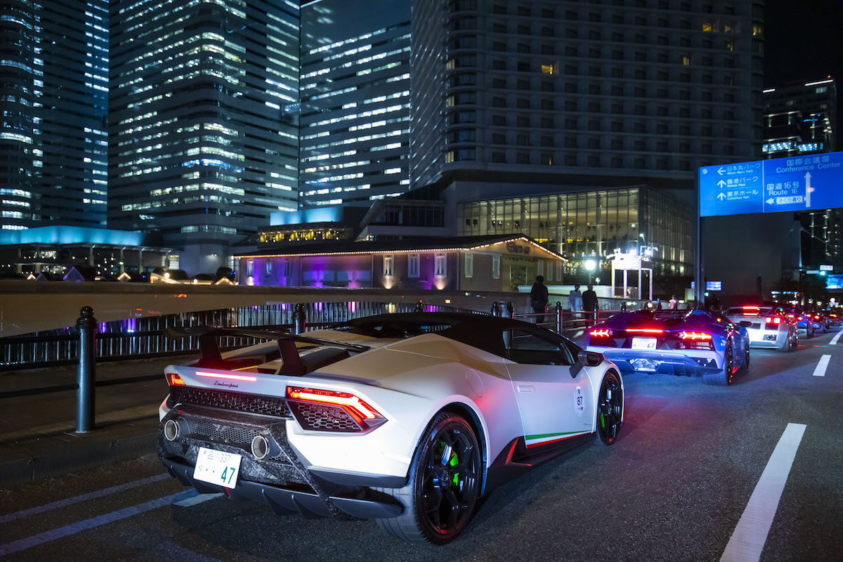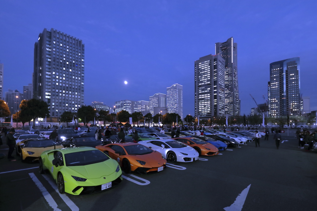 From there, hundreds of Lamborghinis filled central Yokohama’s streets with a cacophony of eight, 10, and 12-cylinder noises, forming a parade that made its way past and through some of the city’s coolest landmarks like Yamashita Park and Minato Mirai. The stampede not only featured new models like the Urus and Aventador S but included some oldies like the Miura, Countach, and even an LM002.