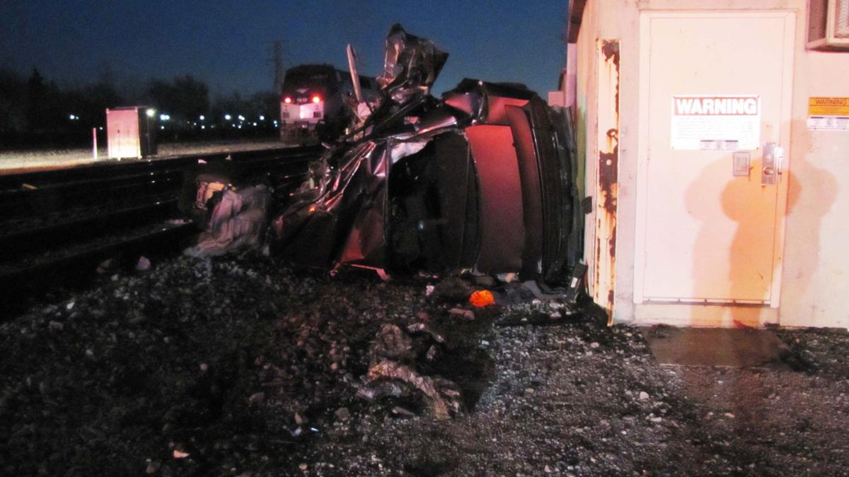 The Amtrak train, traveling from Chicago to Michigan, was carrying 104 passengers and traveling around 40 to 45 mph when it struck the Charger. No one on board was injured, and the train was delayed over three hours. It sustained only cosmetic damage and continued on to Michigan without repairs. A second train was delayed by 20-minutes while they cleared the tracks.