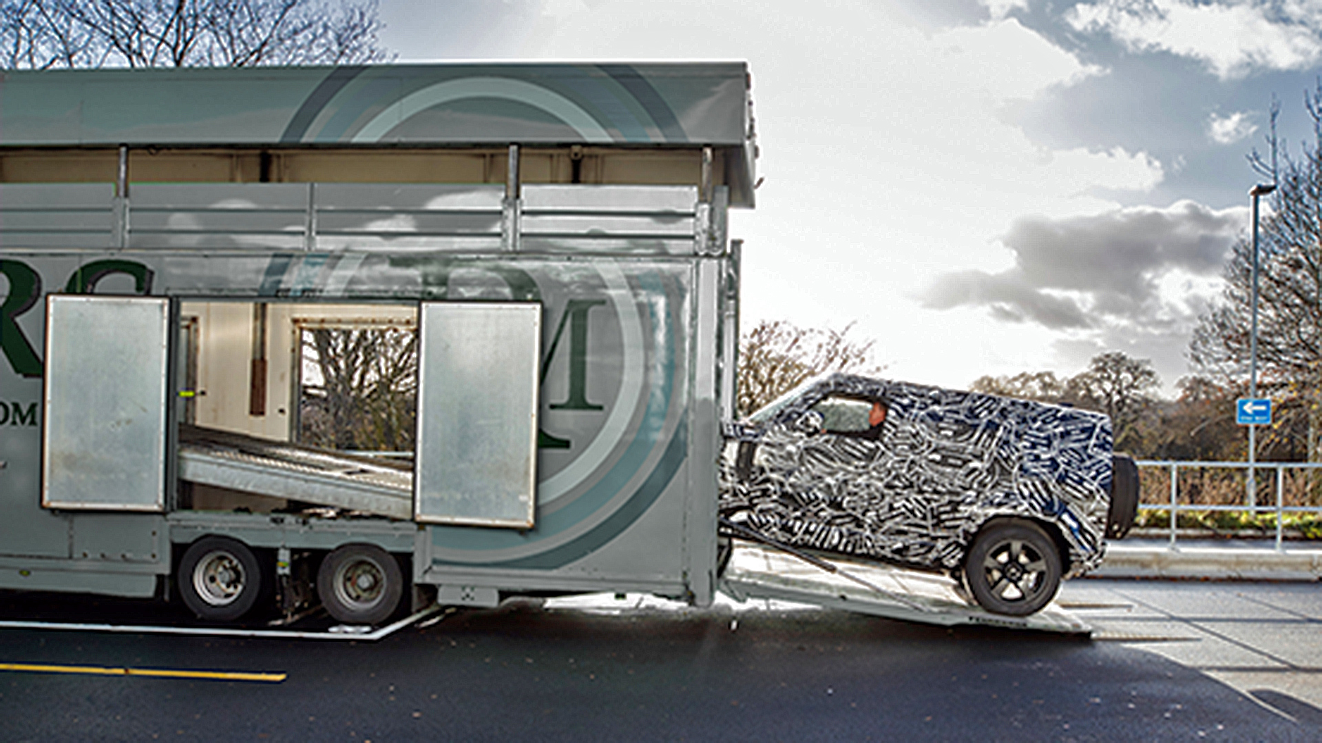 Well, at this point, we can probably change “expected to arriving” to “arriving,” because Land Rover’s low-res post leaves little room for doubt. “DO NOT UNWRAP UNTIL 2019,” it reads in bold-faced type across the top of the image, just above a picture of a snugly-wrapped Defender back its way out of a car carrier trailer like an embiggened Hess truck toy. The picture itself is so cruynch, it’s hard to make out much in the way of those sweet sweet Defender details, but a couple things are clear: it’ll have a spare tire mounted on the back, and it’ll be as square as Pat Tillman’s jaw.