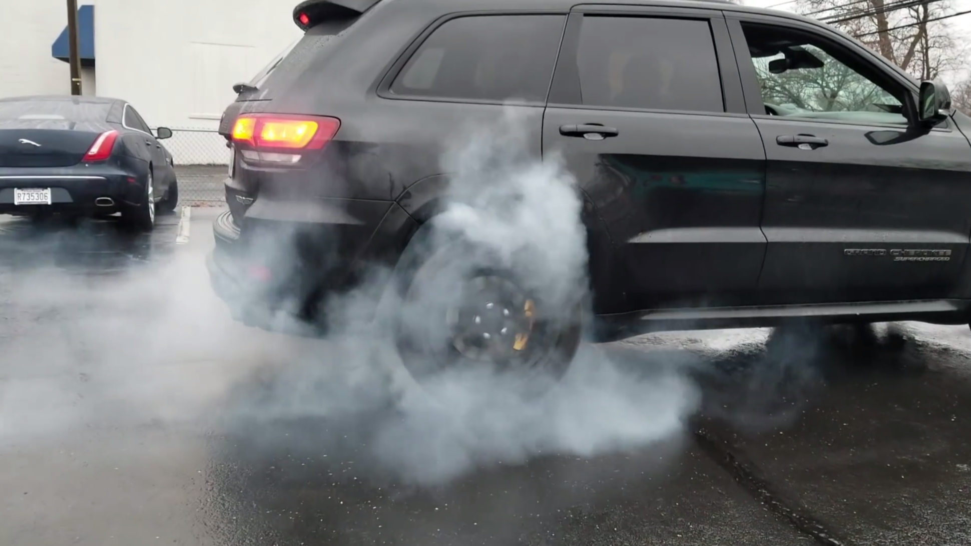 While you technically can roast all four tires at once with the 707-horsepower Jeep Grand Cherokee Trackhawk, you need one hell (…cat?) of a meaty tow strap to hold the all-wheel-drive beast back to pull it off. It’s much easier, of course, to make the Jeep smoke only two meats at once. Luckily, YouTube is here to show us how.