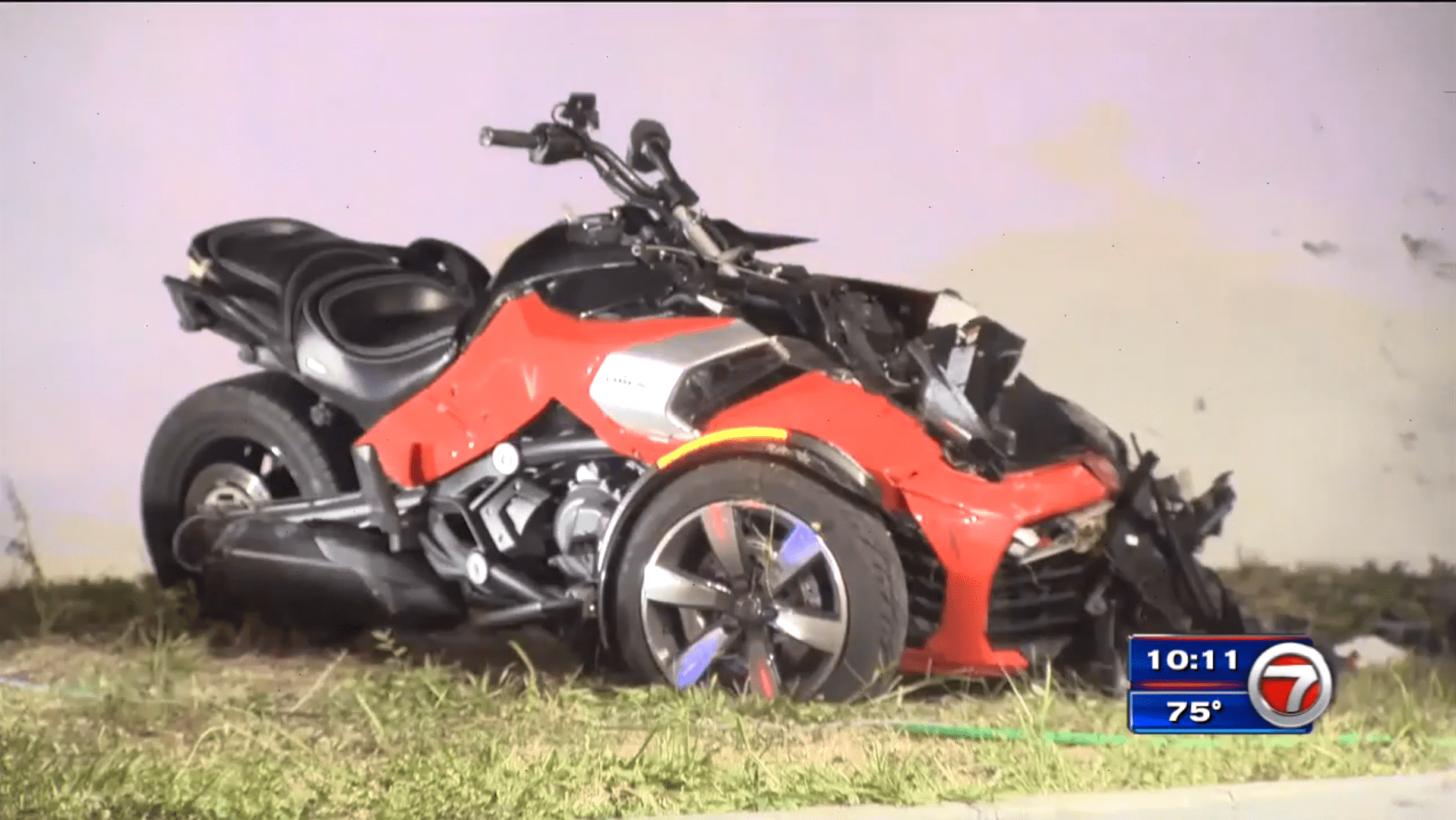 A Florida man’s Can-Am Spyder was hijacked by his three-year-old daughter who proceeded to speed across an intersection and slam into a wall at a high rate of speed. Luckily, the little girl was flung from the vehicle before the crash and the latest reports claim that she is okay and already walking around. The Spyder, however, not so much.