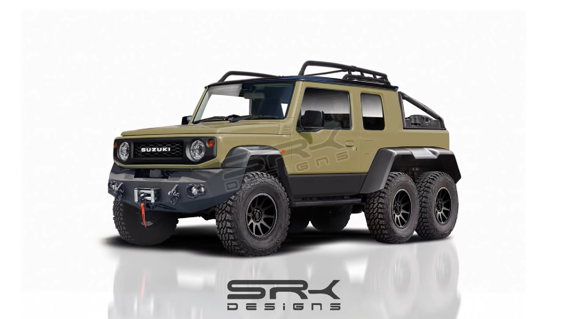 Cooked up by SRK Designs, this Jimny 6×6 clearly takes inspiration from the Mercedes-AMG G63 6×6. It gets six, much beefier wheels, enlarged fenders to match, plus a bed, a sprinkling of off-road trimmings, and a desert-colored camo paint job. And we gotta say, it looks rad. Since this is merely a rendering, Suzuki doesn’t actually build a six-wheeled Jimny—nor one that’s sold in America—but based on SRK’s mockup, we think it totally should.