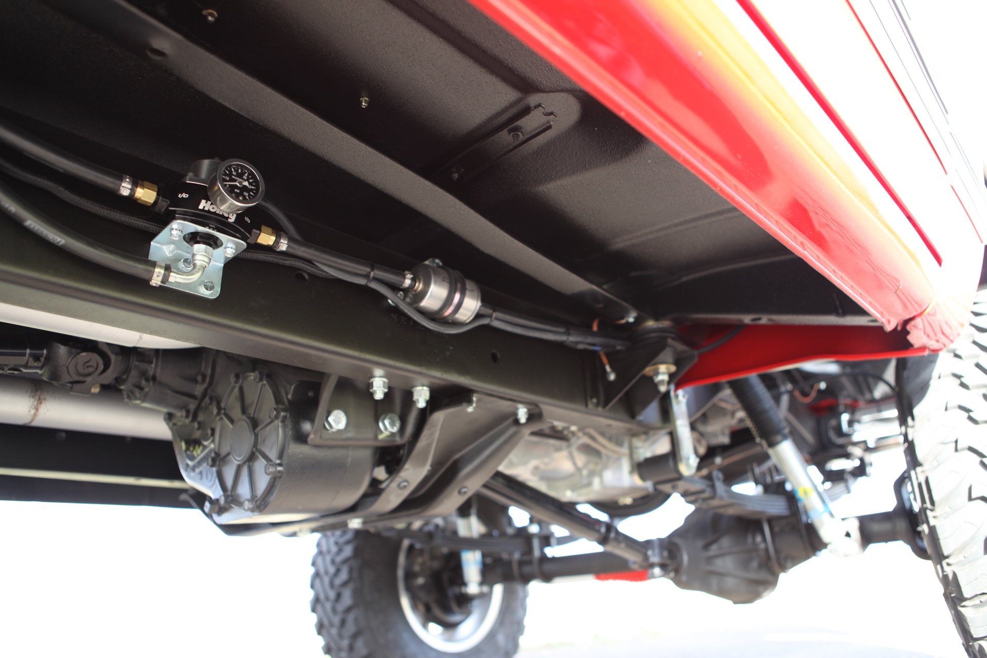If you happen to have an hour to kill, you can watch this rather mesmerizing video showing a slideshow of the step-by-step process turning this boring farm truck into a heavy-duty, off-roading beast that happens to have a killer paint job.