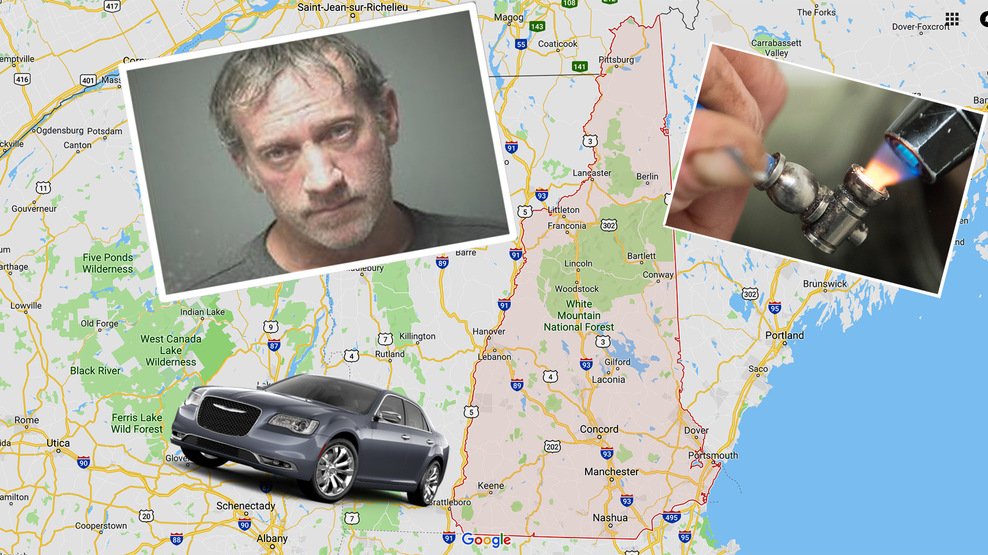 According to a police report obtained by The Smoking Gun, Manchester Police Department detectives from the Street Crimes Unit were behind a Chrysler 300 at the corner of Union Street and Valley Street when they noticed something odd, even by New Hampshire standards: the man in the driver’s seat of the vehicle ahead of them appeared to be smoking a substance that was clearly not tobacco, while the female occupant seated shotgun was performing a very thorough, close-up examination of the driver’s lap.