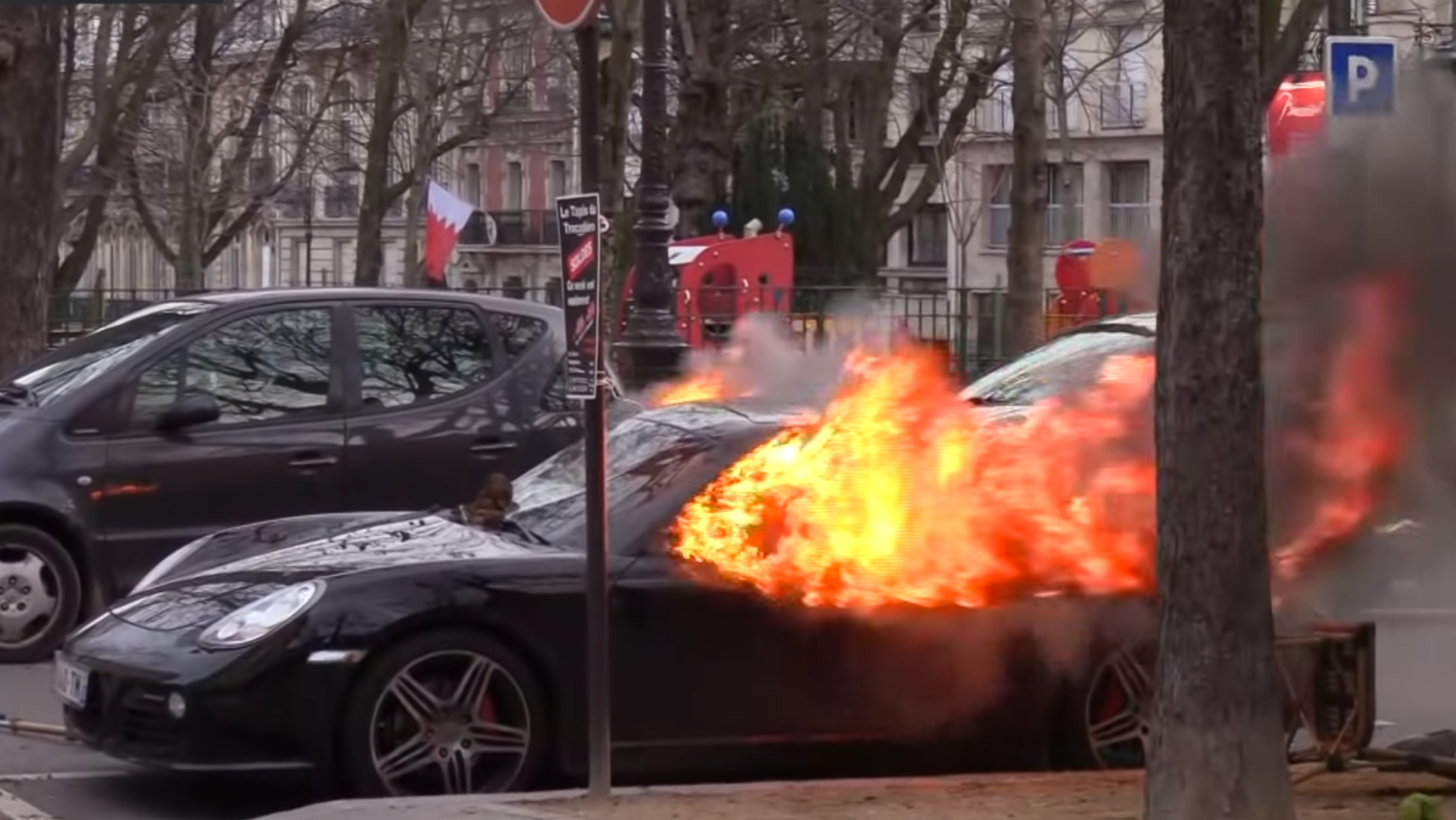 That being said, it wouldn’t be the first time members of the loosely-arranged Gilets Jaunes movement targeted what the average, non-depreciation-obsessed person would consider conspicuous vehicular displays of wealth. A video from December shows a crowd mostly wearing yellow vests turning a 911 Cabriolet on its roof as a Mercedes