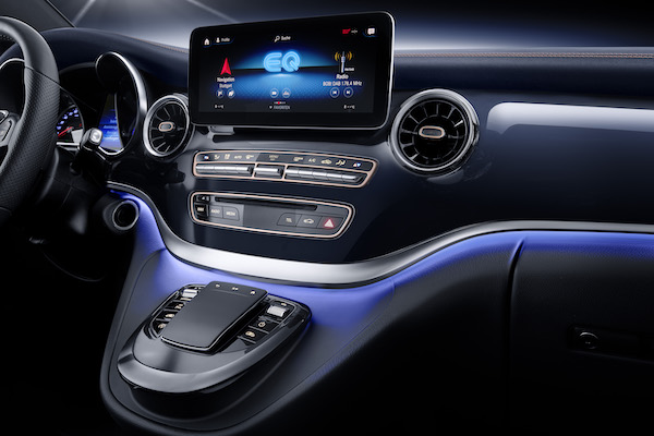 Charging the EQV’s battery can be done from ordinary power sockets, wall boxes, or fast chargers, from which Mercedes says the EQV can gather 62 miles of range in 15 minutes, though the wattage required to reach this charge rate was not disclosed.