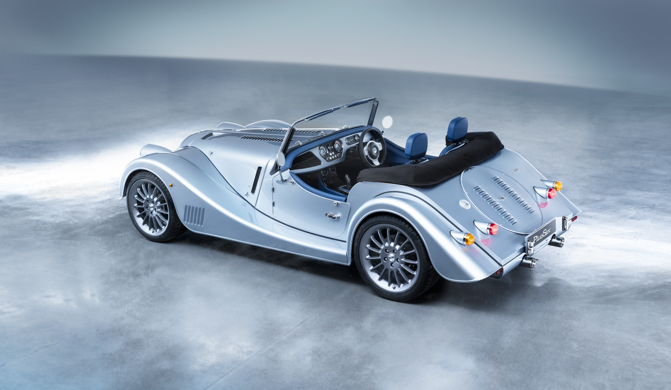 Plus 8, which along with its BMW-sourced V8, was getting long in the tooth. The new Plus Six has a BMW turbo inline-six and has been completely reimagined to be stiffer and lighter than Morgan’s previous aluminum cars at just 2,370 lbs.