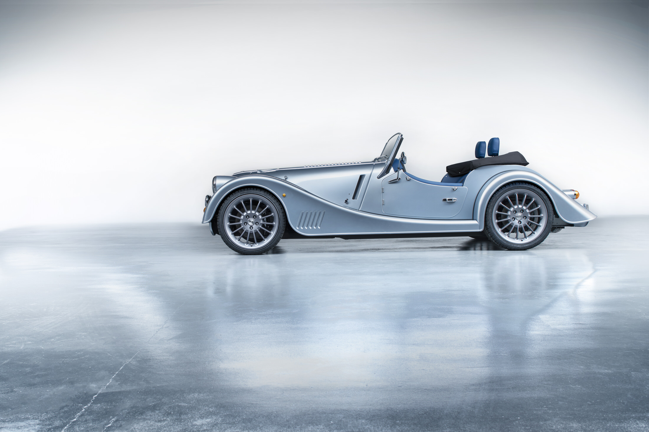 On the outside, subtle hood vents add cooling for the new B58 engine, puddle lights are available for the first time ever, and those funny bar-shaped headlamps are actually Morgan’s now-standard automatic headlamps.