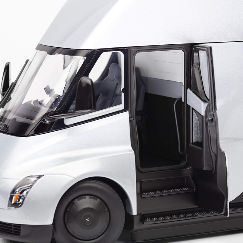 Tesla says that the diecast uses the same 3D CAD data used to manufacture the actual Semi. So while it might not be large enough to fit in, it still features every detail, curve, and surface of the real deal.
