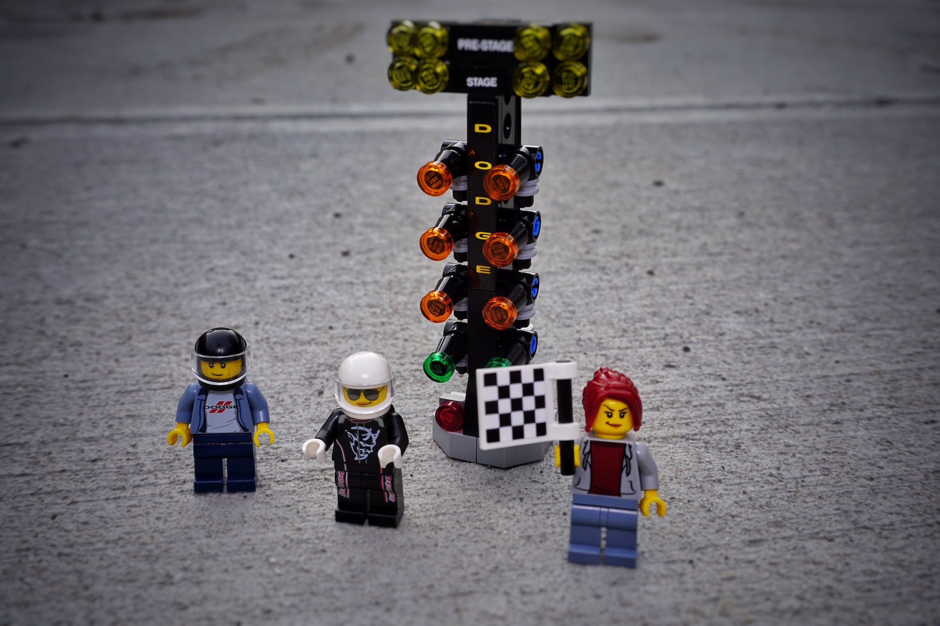 Lastly, the drag racing Christmas tree is a bit of an awkward contraption, but it adds to the overall feel of the set. A sliding mechanism flips the lights up from a downward position, which basically attempts to reenact the lights turning on during a real drag race.