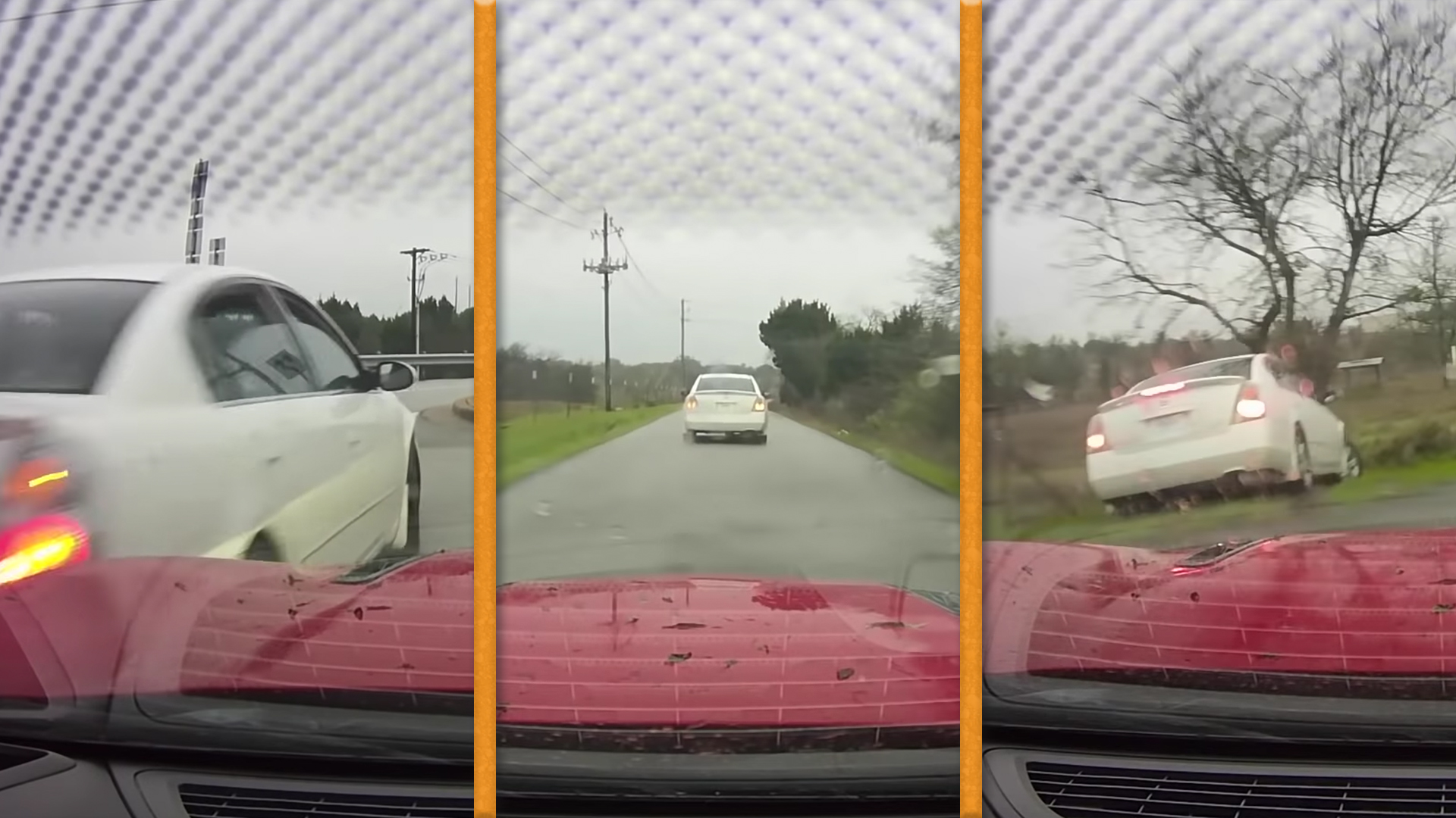 Things can get very dangerous when civilians take action like the Chevy Camaro driver did here. But looking at the footage, it’s clear he isn’t so much chasing as following; he wanted her to stop, sure, but he’s also keeping a relatively safe distance. The rural surroundings also limit the risk somewhat. He didn’t cause her to lose control. It’s painfully clear she never had it in the first place.