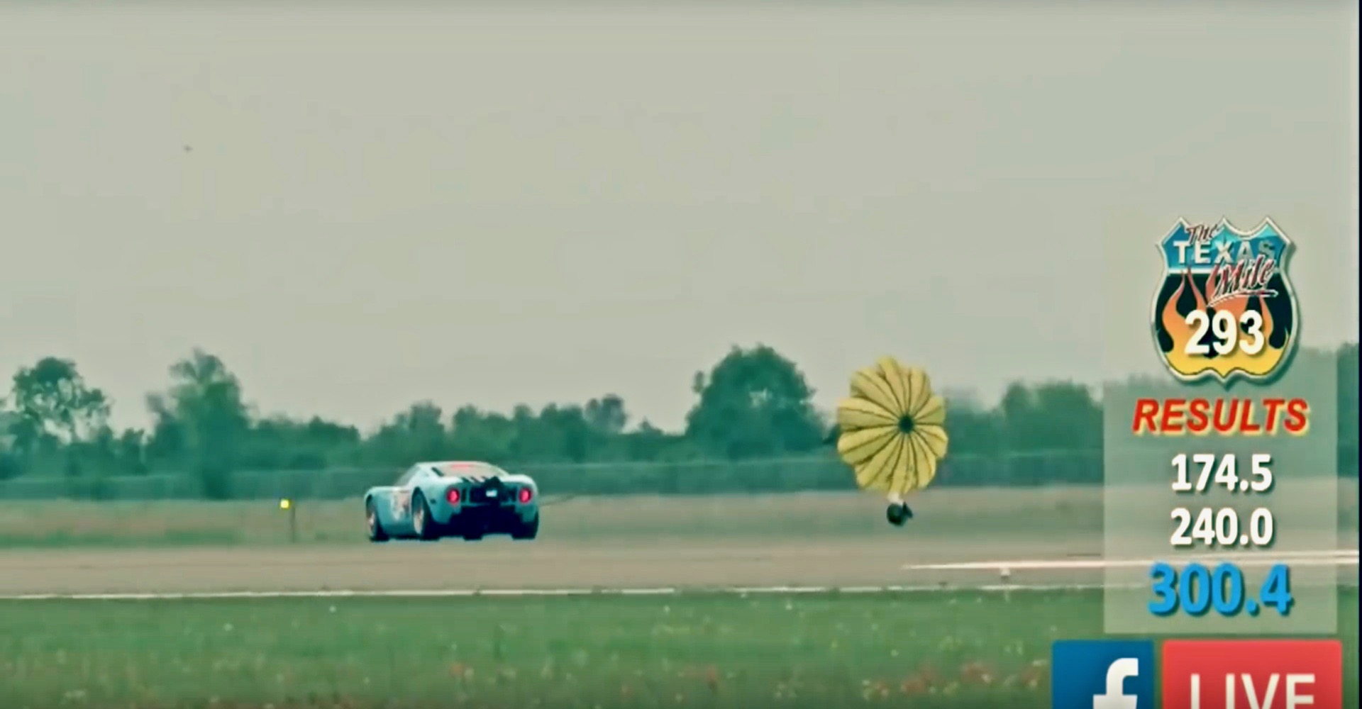 According to a video uploaded to YouTube by M2K Motorsports, the Gulf-liveried Ford GT warmed up with a 174.5-mph run before cranking things up a notch and reaching 240 mph on its second trip down the runway, only to give it the whole enchilada on the third and final run when it successfully reached 300.4 mph. For you Euro folk, that’s a whopping 483.44 kilometers per hour in just a 1.60-km stretch of road. According to new information submitted by Texas Mile management, there were a total of four runs, two for “shakedown were parts failed and had to be replaced” and the other runs seen on the original video shared.