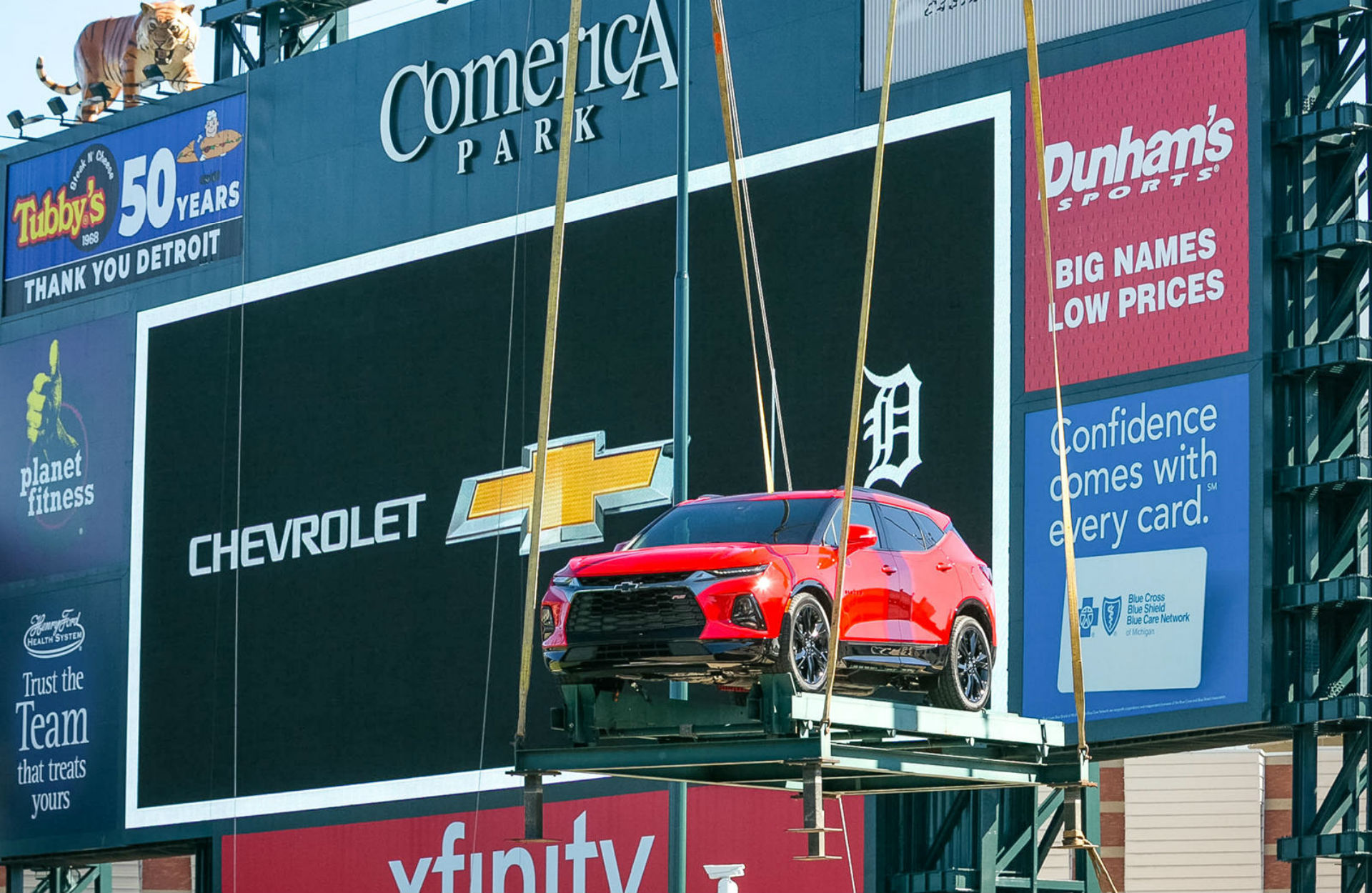 General Motors quietly removed a brand new 2019 Chevrolet Blazer it had on display at Comerica Park over the weekend, reports the Detroit Free Press, instead replacing the vehicle with a Chevy Traverse.