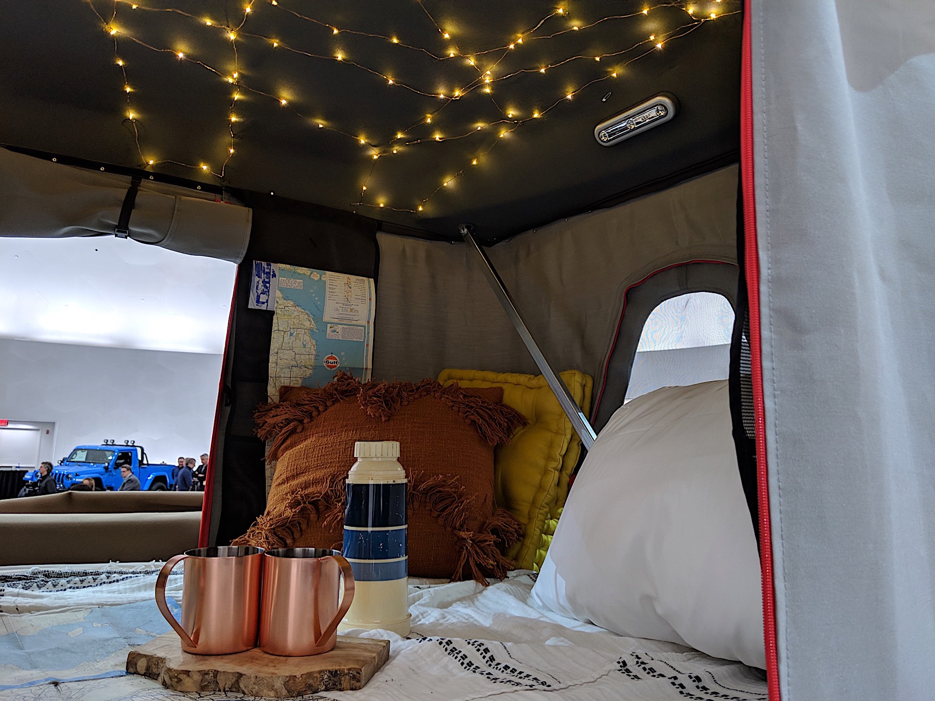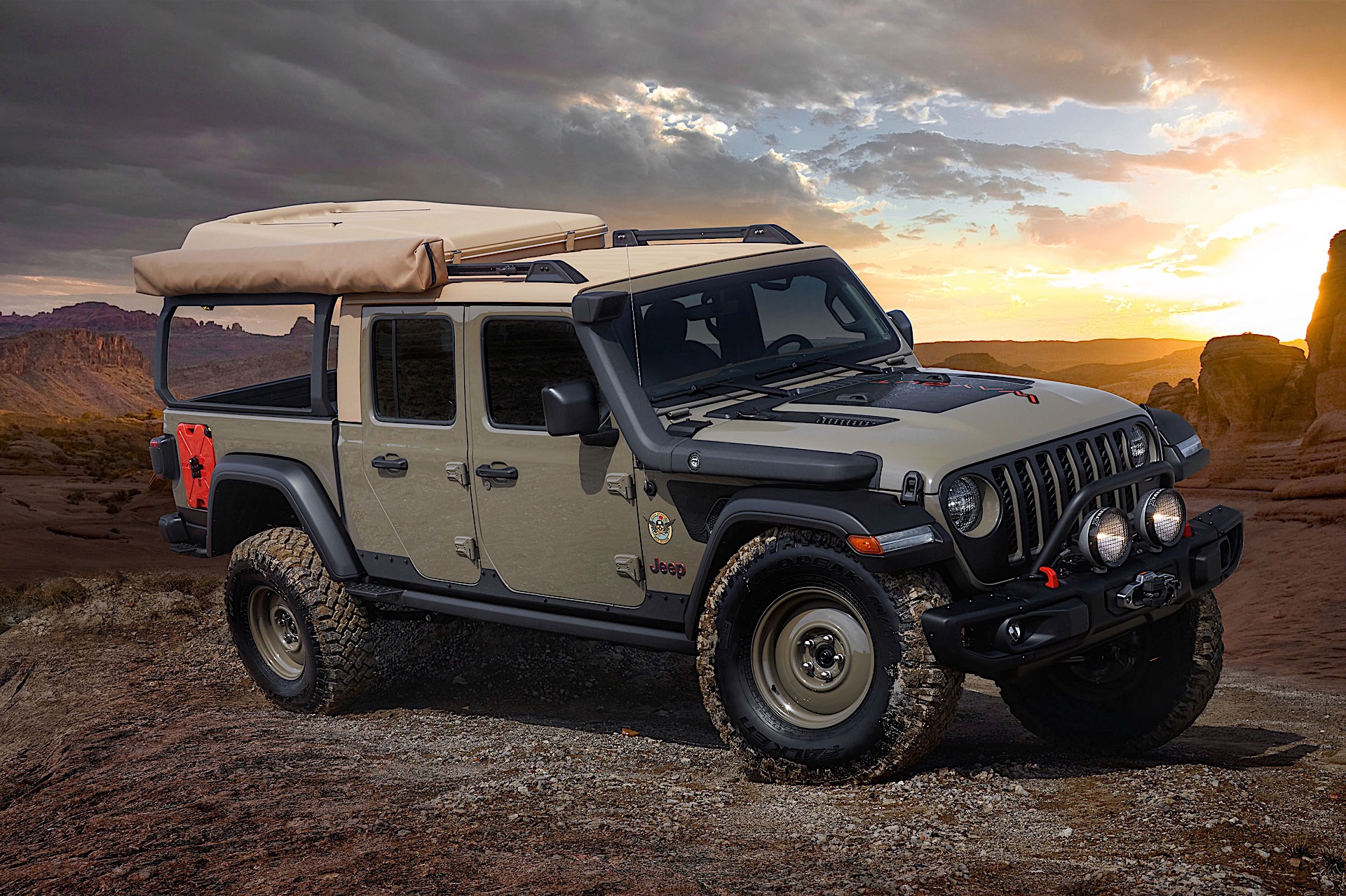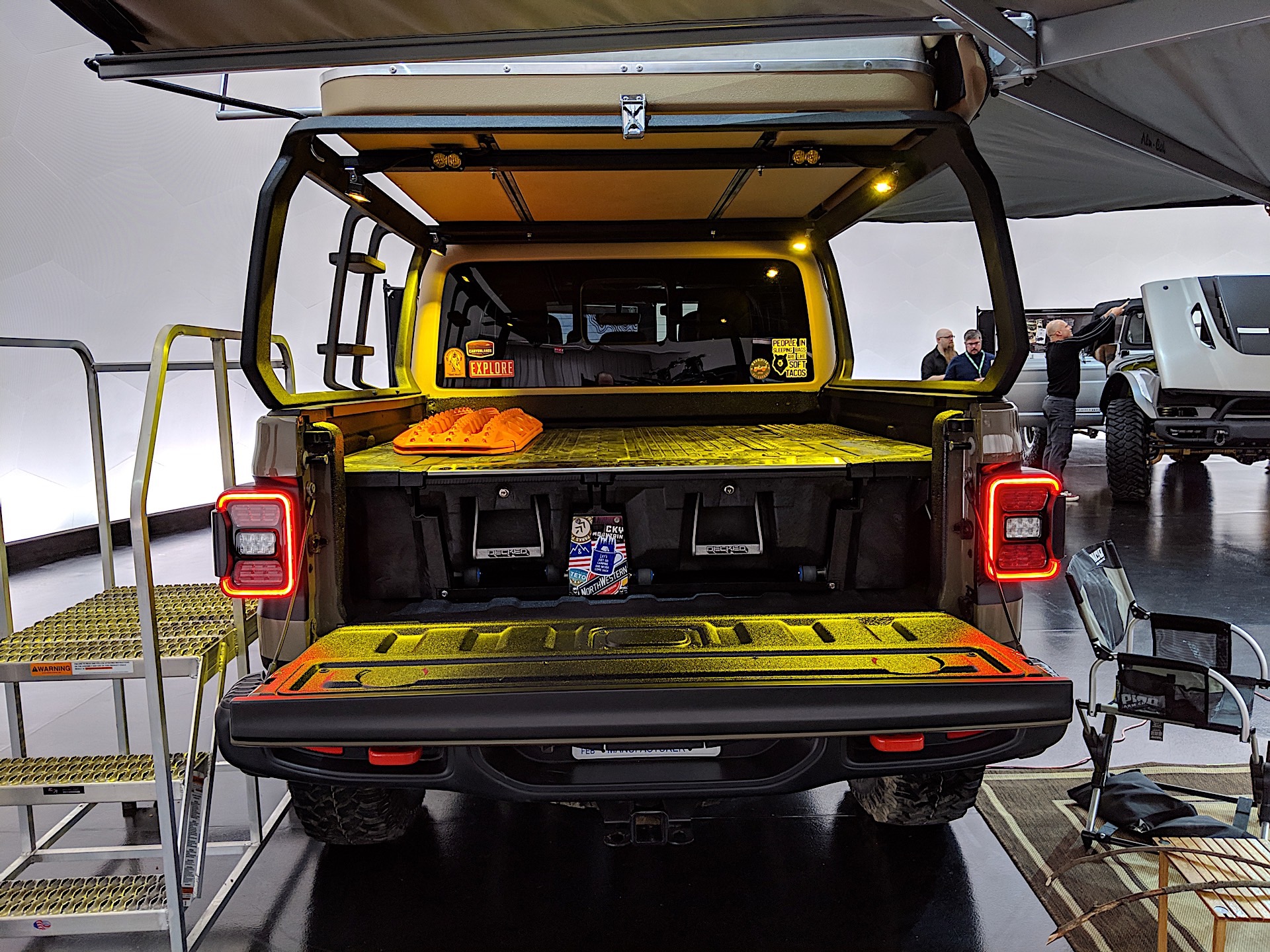 The Wayout is an overlanding Gladiator, complete with a popup tent. It’s painted production Gator Green and has a custom bed rack to support the tent. While the bed rack is custom, we expect aftermarket companies to have them available as soon as they can get a Gladiator to work on themselves.