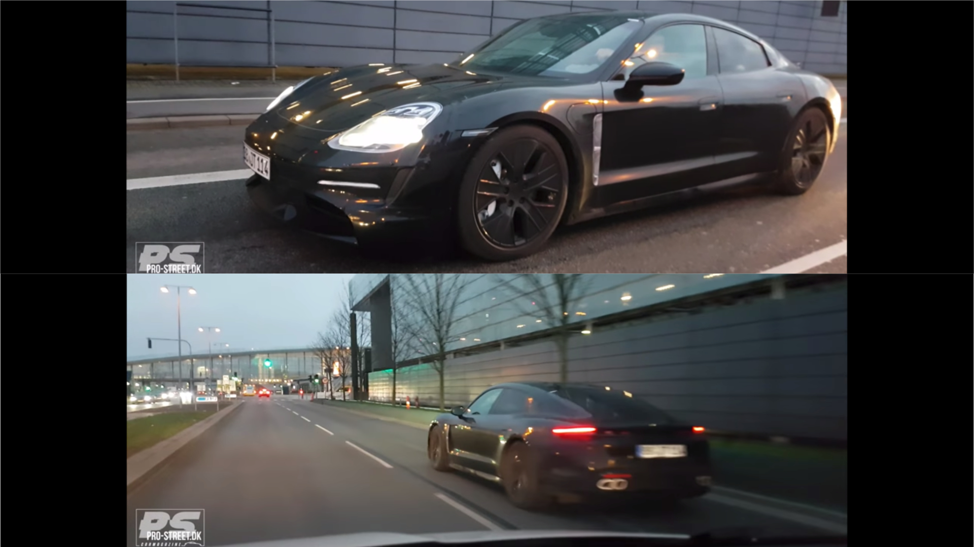 In a video uploaded to YouTube by user “Pro- Street” [sic], the Taycan can be seen in what resembles a near-production guise, with camouflage on just a handful of body details. Its headlights and front fender vents wear light camouflage, and on the rear bumper, Porsche has slapped fake exhaust pipes to trick onlookers into thinking that they’re looking at a Panamera.