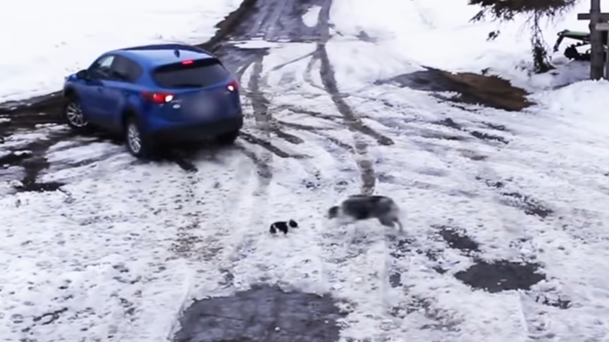 Yet the video of the driveway itself captured something even more incredible—a true act of doggo-saves-doggo heroism.