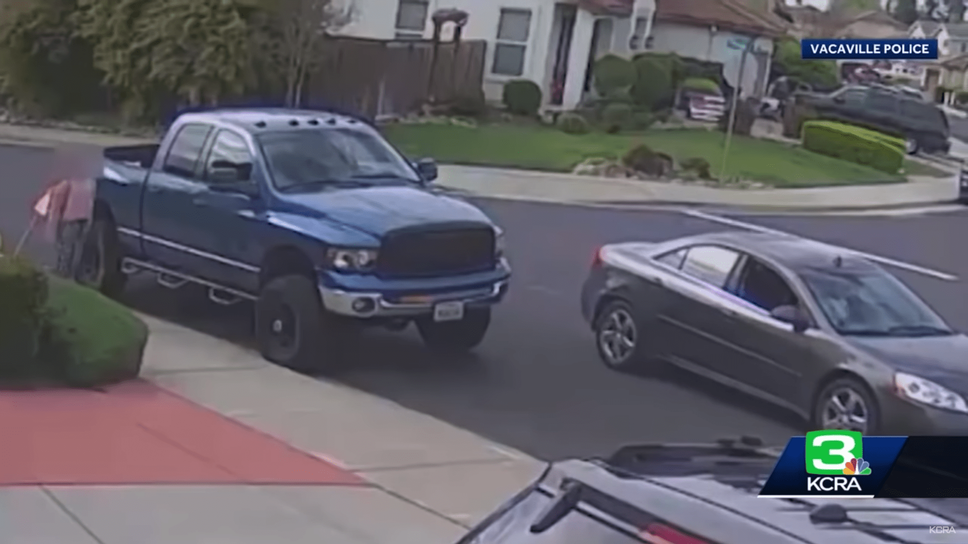 Luckily, while walking down Leisure Town Road she was picked up by a home security camera, which is how the creepy and hair-raising video (especially for a parent) was released to the authorities and the general public. It’s unknown if the girl was aware of the camera, but the footage shows that she promptly hid behind a lifted blue Ram pickup truck as the creepy man in the G6 drove by.