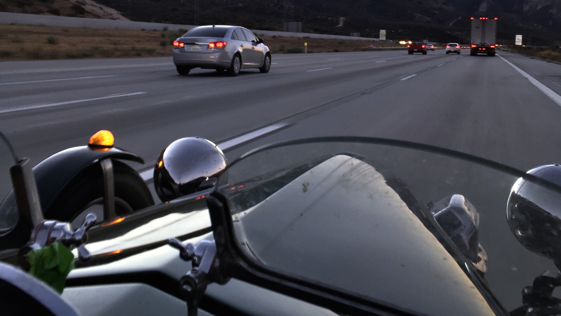 Stuffed into a cockpit even smaller than the Morgan’s, the pair didn’t face the bitter cold Roy and Bowman had to contend with, but they did start their run with a Pennsylvania-wide swath of heavy rain. They had to slow down because of decreased visibility. Sitting only a couple of feet from the road surface, every puddle became an incoming tidal wave as trucks passing in the opposite direction flung sheets of water at them. Protected from the wind and rain by just a pair of old-timey glass half-ovals, they found verbal communication nearly impossible. When open-helmeted shouts couldn’t be heard, they made do with hand gestures. Ferrier hadn’t considered how hard the leather-wrapped board of a seat would be, and Daughdrill hadn’t thought about how difficult it would be to sleep in an open cockpit while wearing a partial-face motorcycle helmet. (Ferrier wore a full-face helmet, and says he slept just fine.)