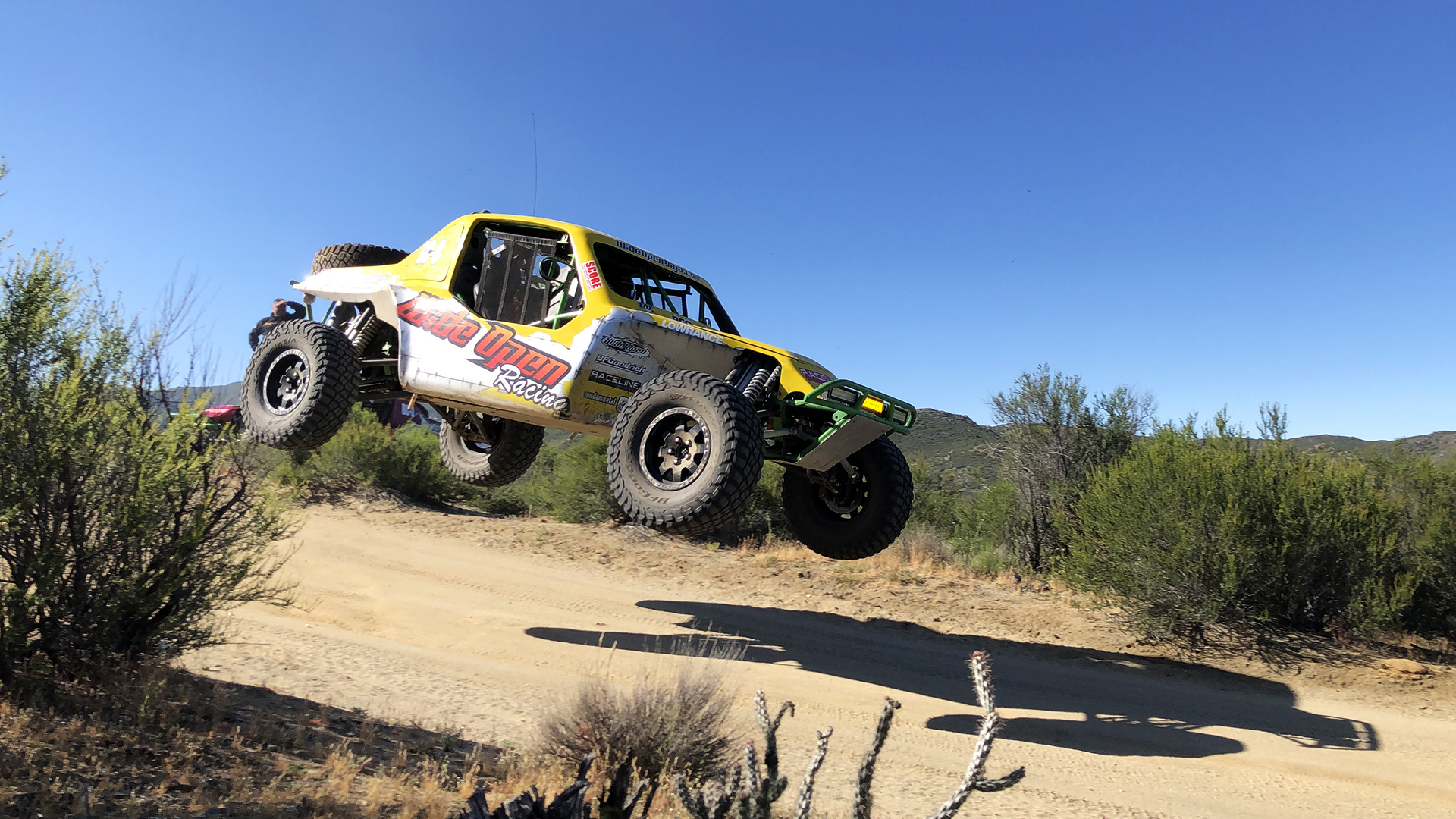 These miraculous vehicles are built on a thick tube-steel chassis, a custom design perfected over millions of miles of hard-fought Baja experience since it debuted in 1997. Nearly 200 horsepower is drawn from a rear-mounted EJ25 Subaru boxer engine, which bolts up to a rigid four-speed manual transmission and powers the rear wheels. Stick shift experience is a must. Four-corner independent suspension with remote reservoir shocks offer a flexible 18 inches of wheel travel all around, and 33-inch BFGoodrich KM3 shoes are one of the few tires capable of everything Baja will throw at you—deep silt beds, miles of dagger-sharp rocks, the occasional water crossing, and of course, high-speed jumps. There are no sway bars. They’re literally the cars that Wide Open sends into the real Baja 1000. And they usually finish—no small feat for a race that sees more forced retirements every year than a round of corporate layoffs.