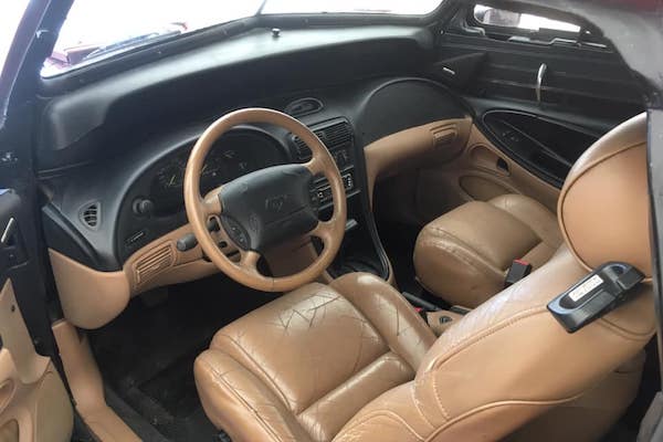Underneath, however, things are mostly Mustang. Opening the hood reveals an intake manifold that belongs to the advertised 5.0-liter Ford V8, one that in the Mustang GT made 215 horsepower and 285 pound-feet of torque. This engine is linked to the wheels via an unspecified automatic transmission—likely the four-speed AODE from the Mustang, as the Plymouth original presumably isn’t up to the task.