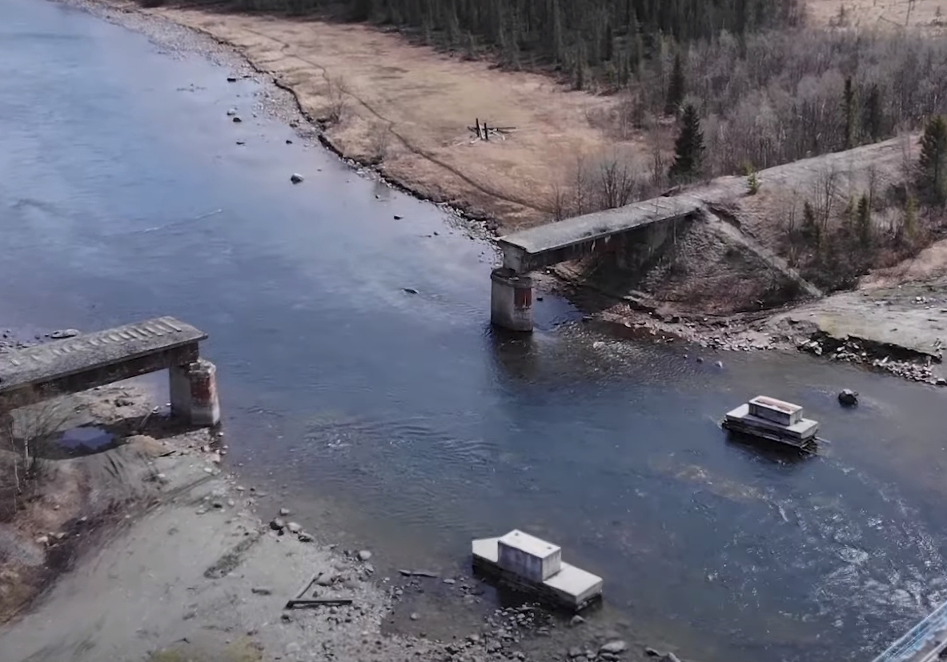 Photos of the bridge began circulating in mid-May on Russian social media site, VK, which showed that the span had collapsed into the Umba River. Roughly 10 days later on May 26, more photos surfaced of the bridge showing that the rubble had randomly disappeared without a trace.