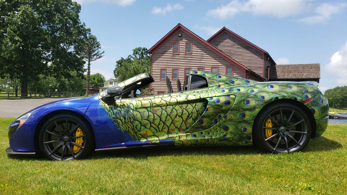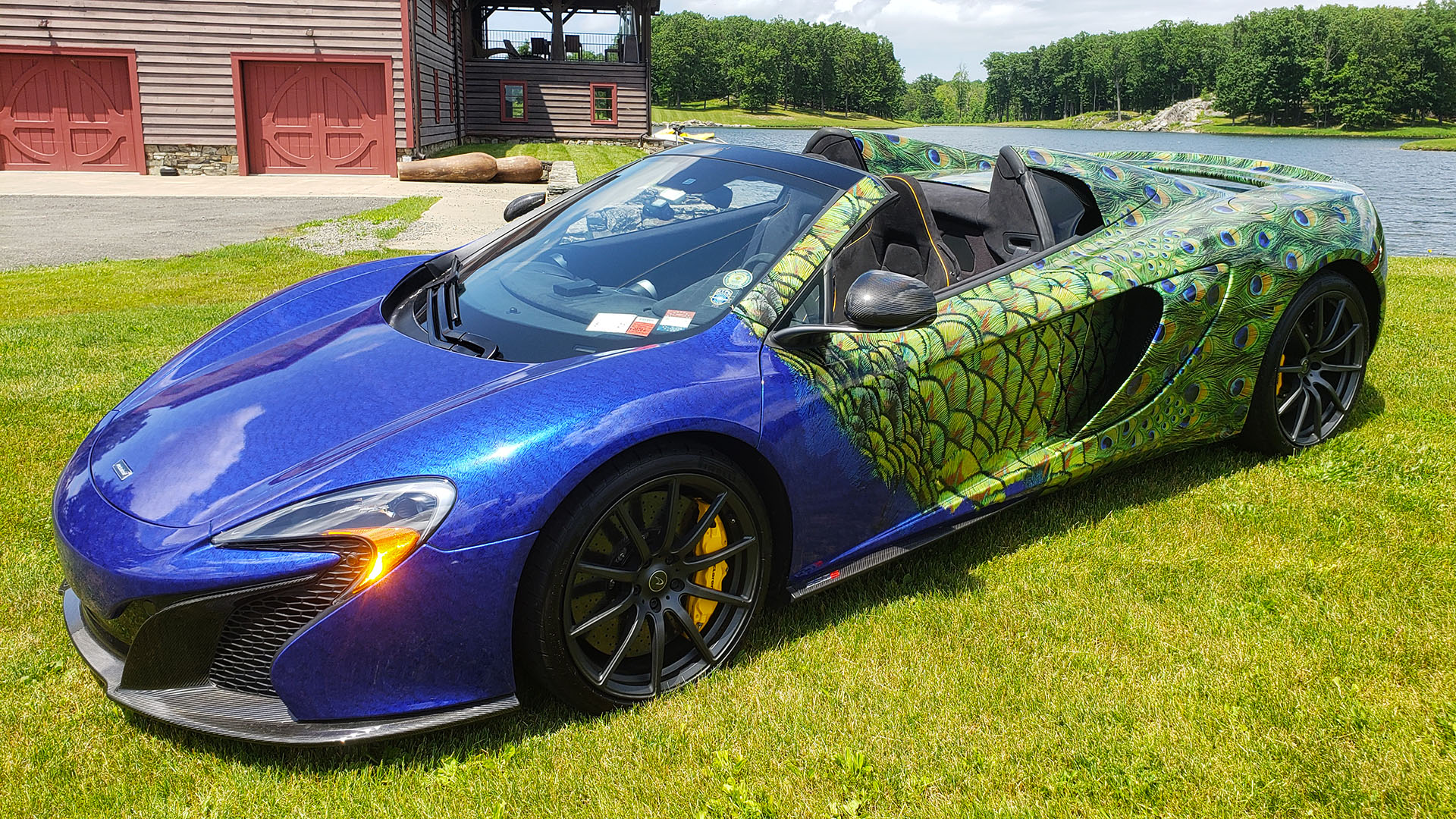 Listen. Before you come down too hard on this hyper-decorative wrap job, understand the car’s owner Alan Wilzig is an enormously generous guy who supports causes from hospitals to children’s’ charities, often by throwing huge fundraisers at the private racetrack he built in the front yard of his property in upstate New York. Wilzig is well aware faux peacock feathers are not the kind of thing you’d normally find plastered on a McLaren, but he has his own vision. He respects your opinion, but he’s going to do what he’s going to do.