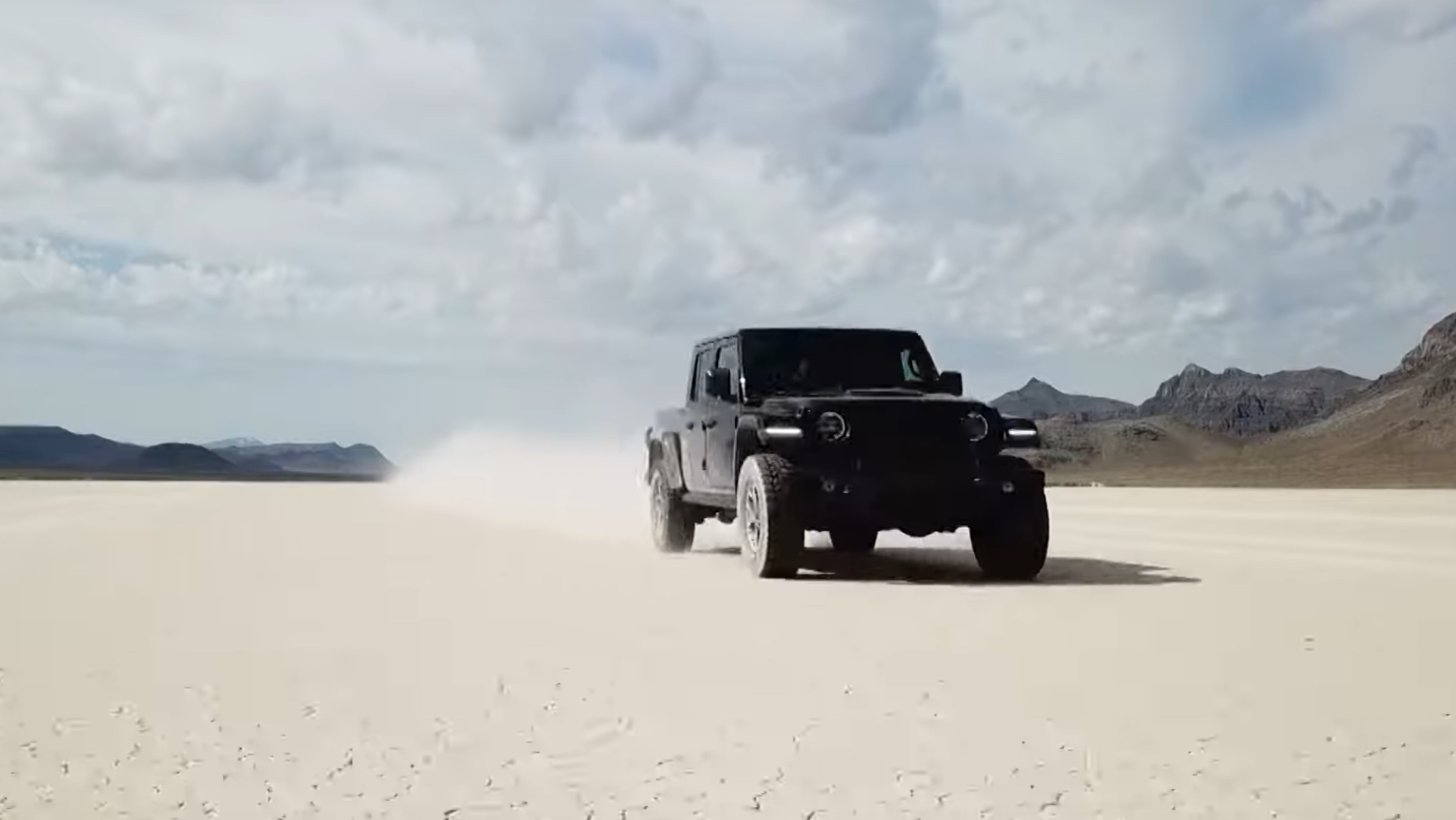 You can notice a little vibration in the steering wheel from the rough lake bed during TheStradman’s run, but overall, finding the speed limiter on a bone stock, brand new Gladiator looks like a pretty boring experience.
