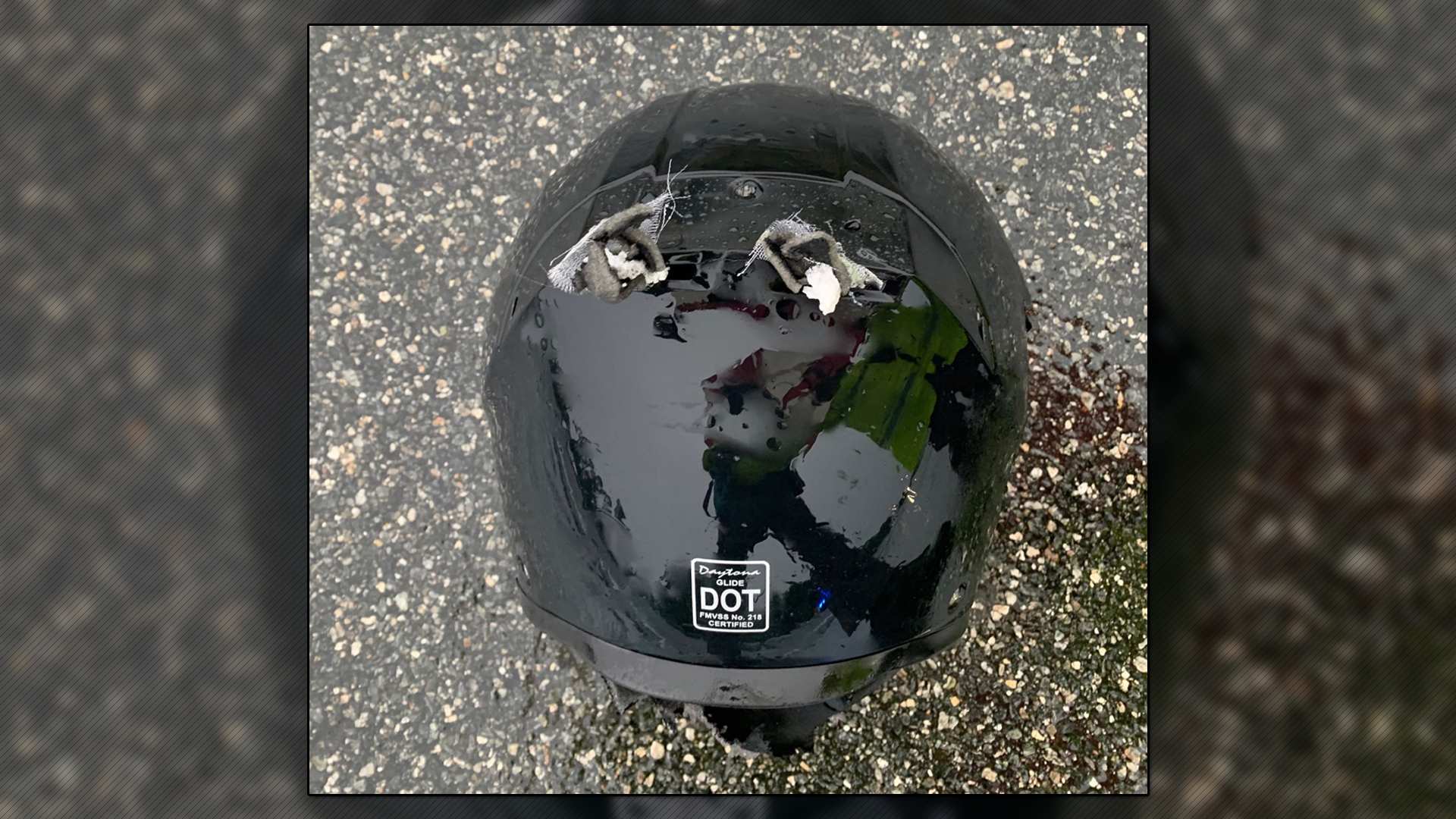 A photo of the man’s helmet was posted to Twitter by the FHP to showcase the damage caused by the blitz.