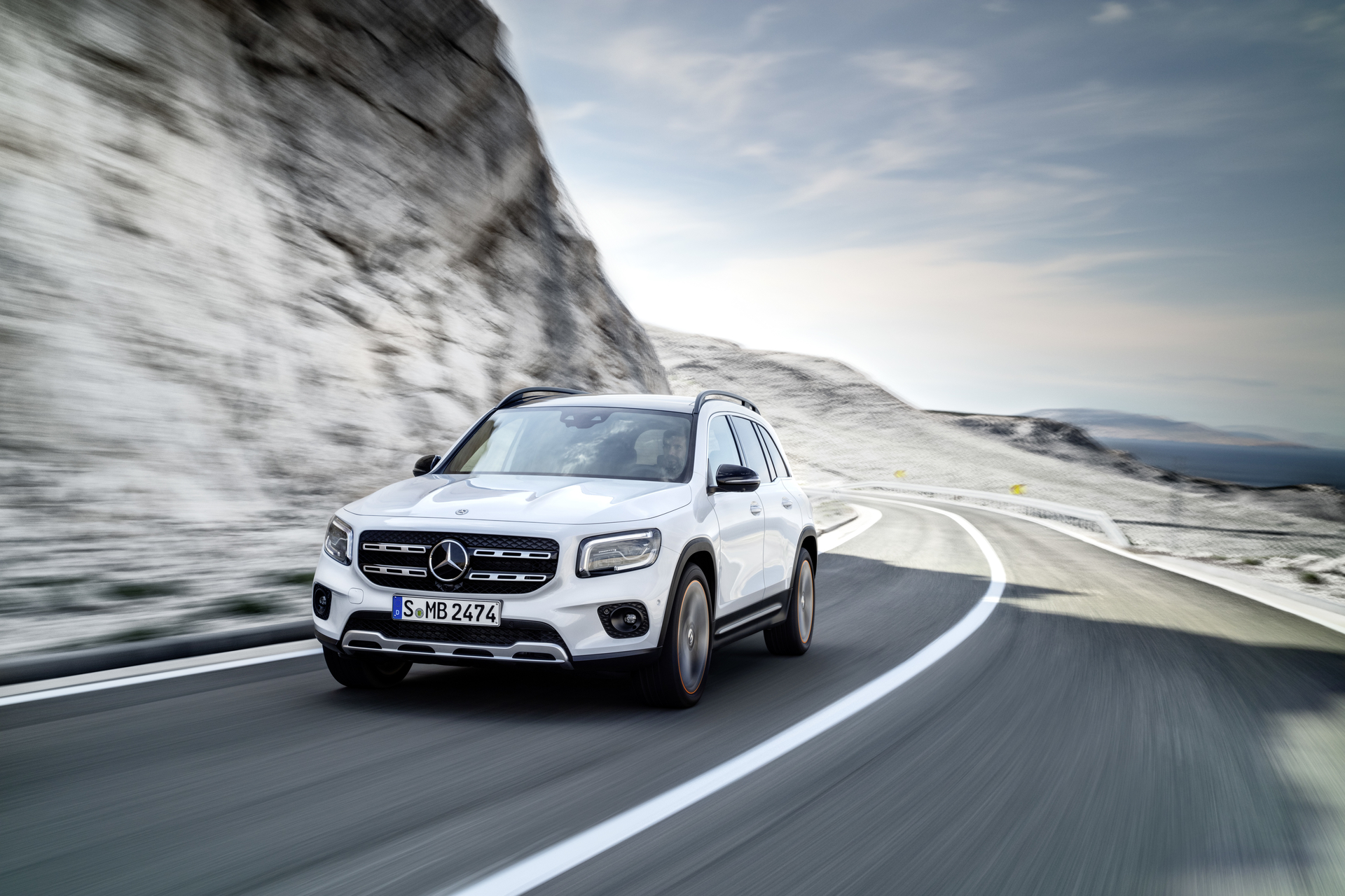 The new Mercedes-Benz GLB slots between the GLA and GLC SUVs and rides on the company’s compact car platform that also underpins the A-Class, CLA Coupe, and GLA SUV. However, Mercedes-Benz opted to stretch the overall dimensions—the GLB is 5.1-inches longer than its GLA sibling—to offer customers an optional third-row layout. With seating for up to seven, the new GLB aims to pull customers looking for luxury and space for a burgeoning family as the rear seats all have ISOFIX anchors for child car seats.