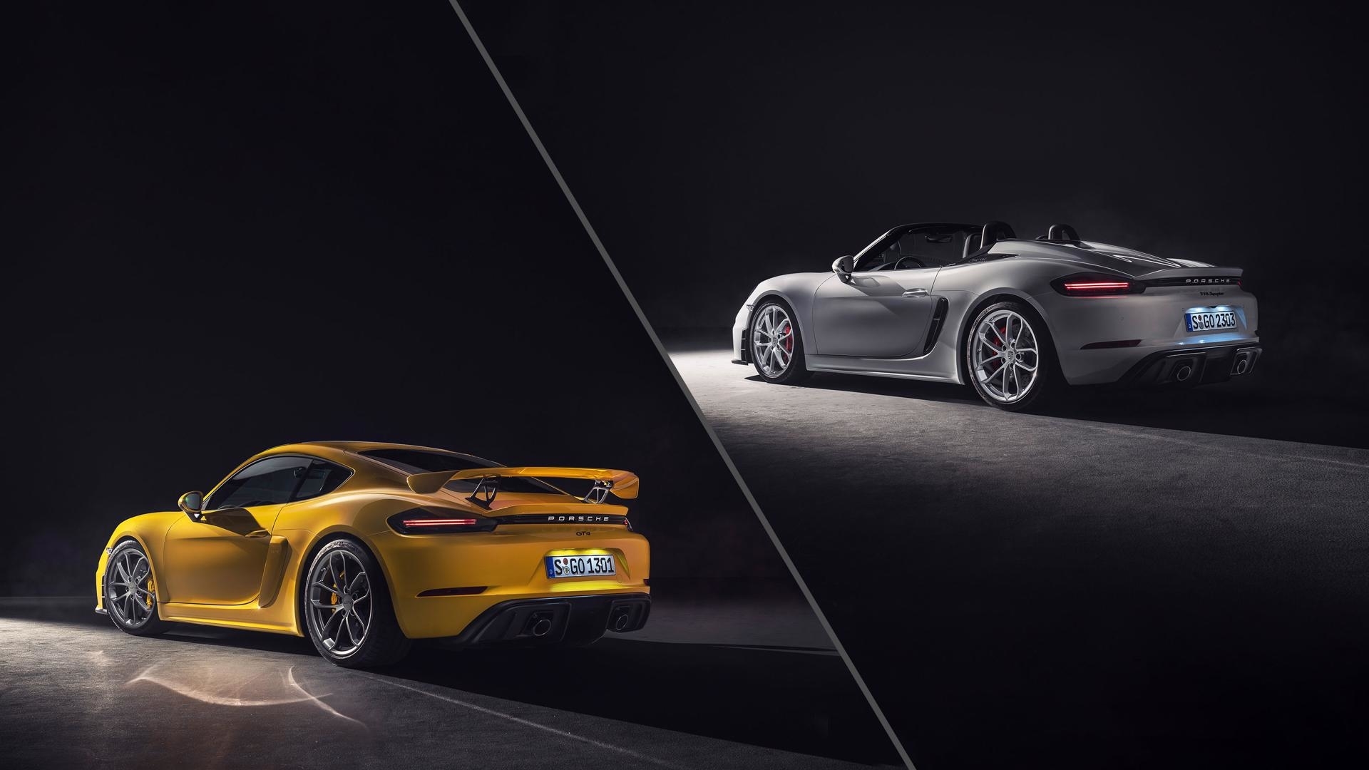 Porsche says both will hit 62 mph in just 4.4 seconds, while the top speed for the 718 Spyder is pegged at 187 mph and the 718 Cayman GT4 will hit 188 mph. To help the 718 Spyder achieve that top speed figure, Porsche designed the car with a functional rear diffuser that according to Porsche, is the first Boxster to “generate [real] aerodynamic downforce at the rear axle.”