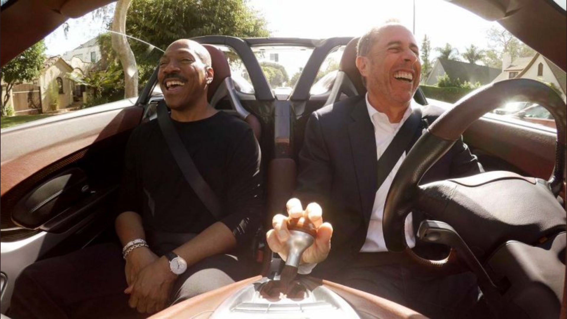 Notable guests include Eddie Murphy in what appears to be a Porsche Carrera GT (peep that wooden shift knob), Seth Rogen, Ricky Gervais in a Rolls-Royce Dawn, Jamie Foxx, Martin Short, and Matthew Broderick. It’s unclear what car Seinfeld chose to pick Ferris freakin’ Bueller up with but we’ll be damned if it wasn’t some sort of ’60s drop-top Ferrari.