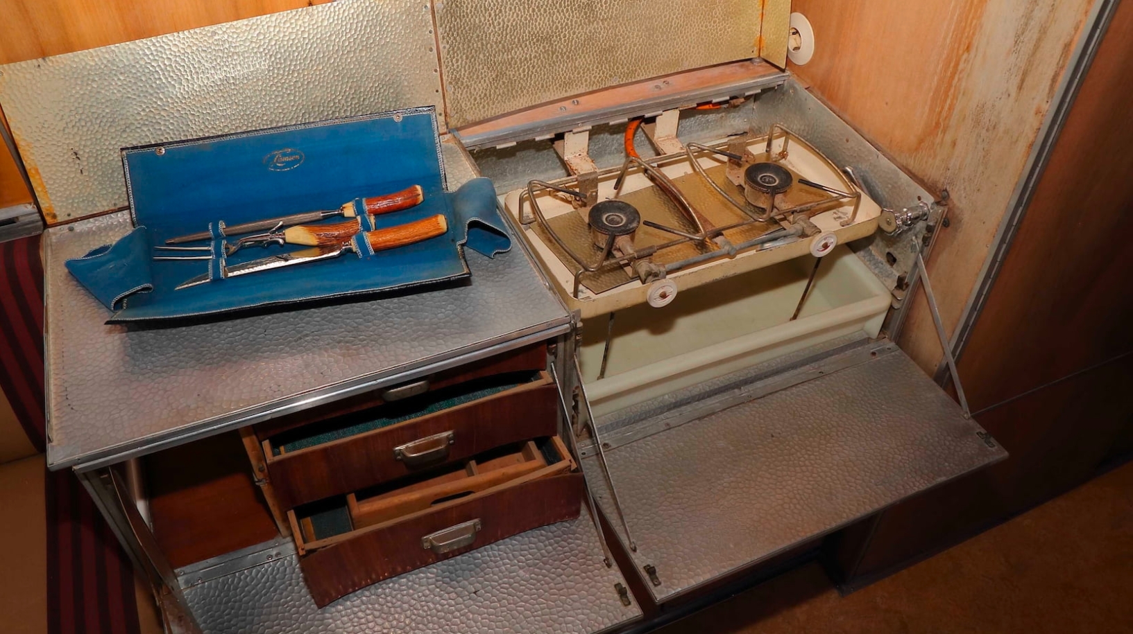 Each Tempo camper was built by special order between 1955 and 1959 and featured an all-aluminum body by Mikafa, a company based in Minden, Mkara who specialized in unique coachwork. When fitted with the Porsche engine, it was called the “Sport” model, and it even came with bespoke Porsche badging to signify that there was something even more unique under the hood.