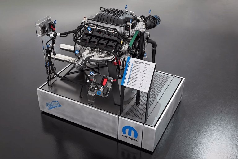 The former is Mopar’s most powerful crate engine ever sporting the aforementioned four-digit horsepower figure as well as 950 pound-feet of torque from 7.0 liters of supercharged displacement. It takes the decades of knowledge from Fiat Chrysler’s in-house tuning arm and applies it to modern-day muscle, resulting in a world-beating power plant that can be ordered and shipped directly to your house or shop.