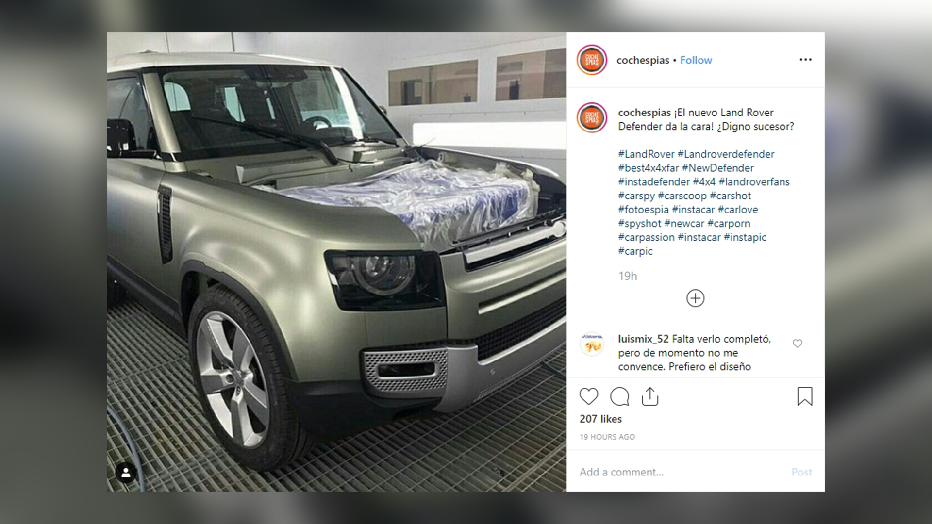 The Instagram shot is captioned: “The new Land Rover Defender shows its face! Worthy successor,” meaning someone at the site was able to get a snap of the supposed car uncovered.