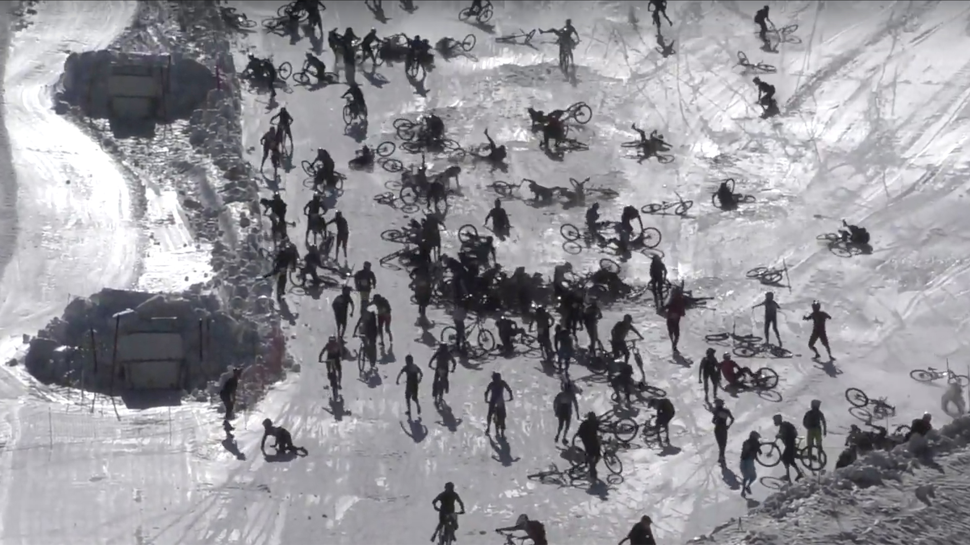 Thrill-seekers gather by the hundreds to barrel down the French Alps’ treacherous “Mountain of Hell” race each year, taking off from the top of a glacier on highly kitted mountain bikes and speeding downhill in search of record times. However, during a late-June run at the Les Deux Alpes, riders were lucky if they made it to the bottom at all as a series of early crashes caused a pileup that makes any Tour de France collision look like child’s play.