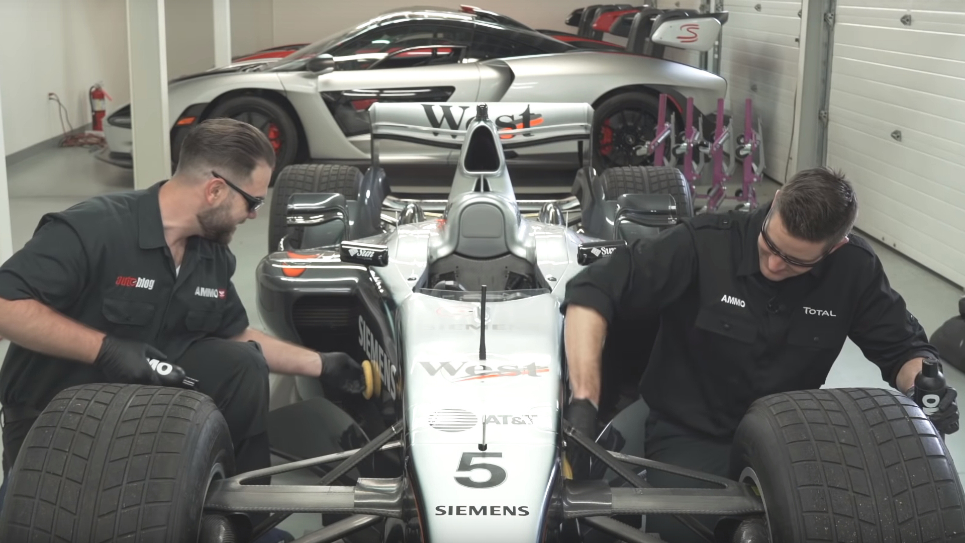 Detailing your own ride can be a tedious and back-breaking process, especially if you want to make sure it’s done right. But what is it like to detail a Formula 1 race car? Car cleaning guru Larry Kosilla of AMMO NYC took up the task with McLaren Boston and recorded it all, uploading the McLaren MP4-19B race car’s special treatment to YouTube for us to ogle at.