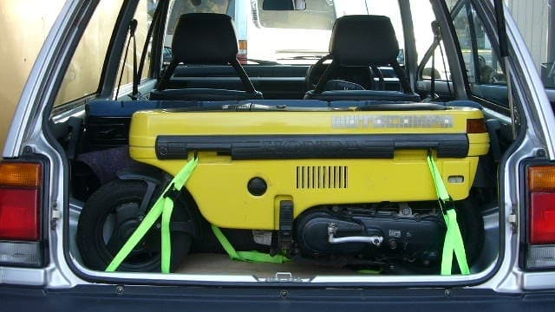 The Motocompo was a collapsable “trunk bike” bundled as an optional add-on with the sale of a Japan-only commuter called the Honda City. The 2.5-horsepower 50cc bike could fold away into the rear hatch and was meant to navigate the last mile of the urban sprawl after parking the vehicle. Honda marketed the duo as a perfect urban mobility solution, outlining the best of both the four-wheel and two-wheel lifestyle.