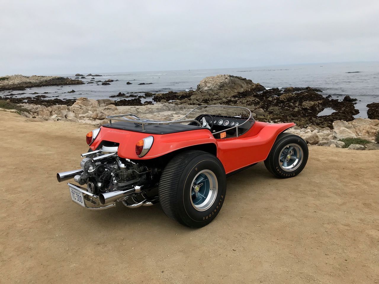 This machine was built on a shortened Volkswagen Beetle chassis with heavier-duty suspension, wide Firestone tires, and a Chevrolet Corvair engine hanging off the back that’s pushing 230 horsepower to the rear wheels through a four-speed gearbox. It weighs just 1,000 pounds, meaning there are only 4.4 pounds of buggy per horsepower—that’s better than a Dodge Viper SRT or Chevrolet Corvette Z06 from just a couple of years ago.