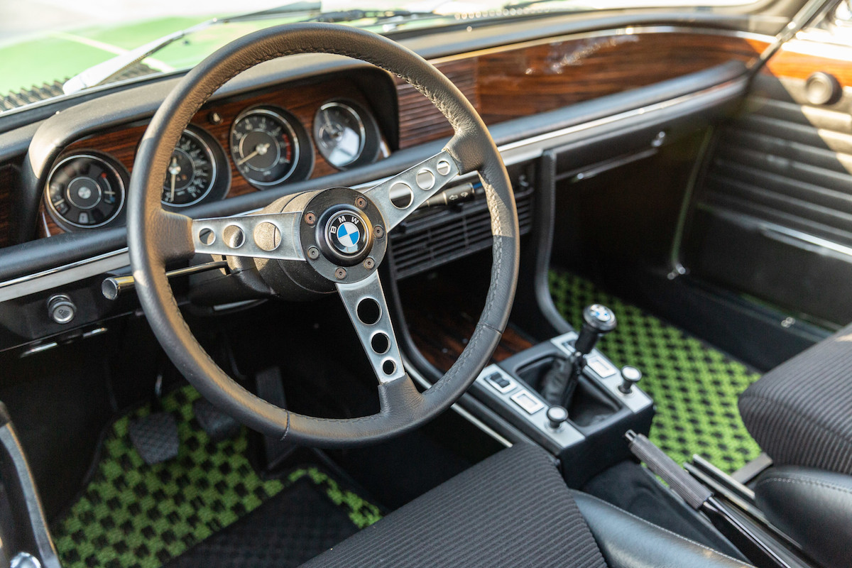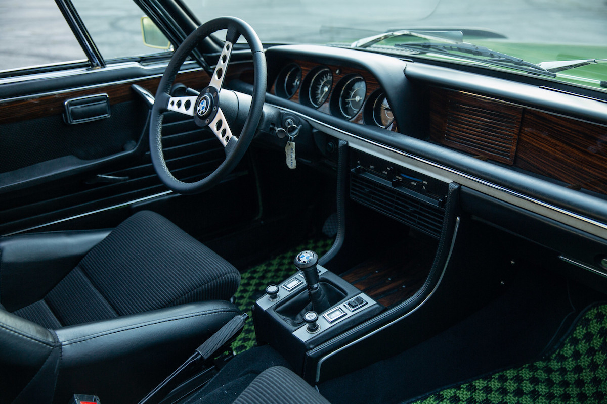This example is one of 57 Series 2 CSLs produced, and one of just four finished in Taiga Metallic green. The Series 2 introduced fuel injection and a marginally larger 3.03-liter engine than its predecessor, but this car is powered by a rebuilt 3.2-liter inline-six that pairs nicely with the original Getrag four-speed manual transmission. It also comes with 14-inch Alpina wheels and black Scheel sports seats. (Check out those checkered green carpets!)