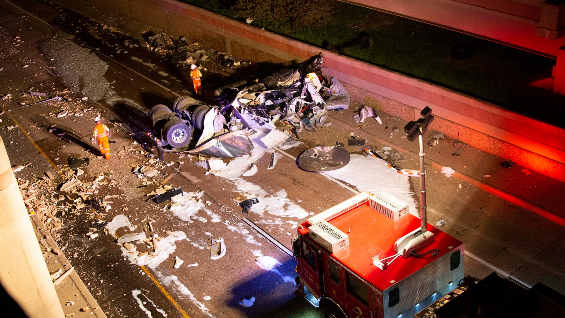 Hazmat crews were also involved with the accident due to the nature of the crash. The truck’s fuel tanks were offloaded and the unknown substance inside the tanker was ultimately identified as orange juice.