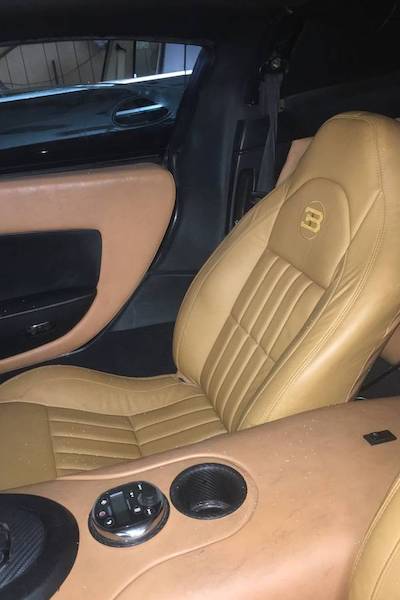 It’s no better throughout the rest of the interior, which is plainly not that of a car which originally cost seven figures. The leather upholstery? Colors don’t match. The back seats, which a real Veyron doesn’t have? Dirty. The center console? Crusty, like someone has been wiping their nose with it. As a whole, the interior looks as if it’s not recently (if ever) been cleaned.
