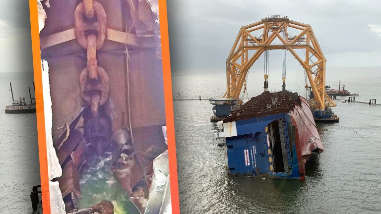 Nineteen crew members were able to abandon ship before the Golden Ray completely capsized, but rescue teams had to cut a hole in the side of the hull to extract the four remaining crew members trapped below deck. Complicating efforts were a number of small fires that started throughout the ship as various mechanical systems began to fail from the stress of the capsizing.