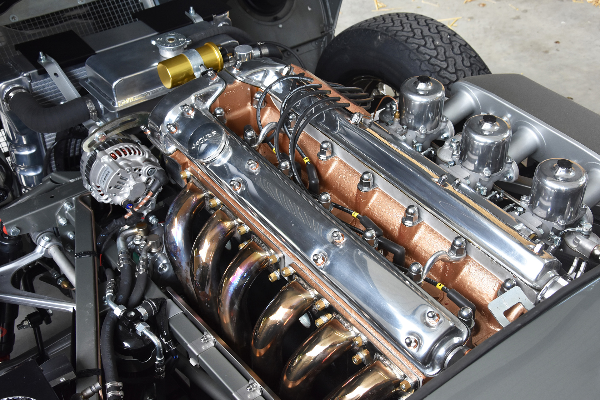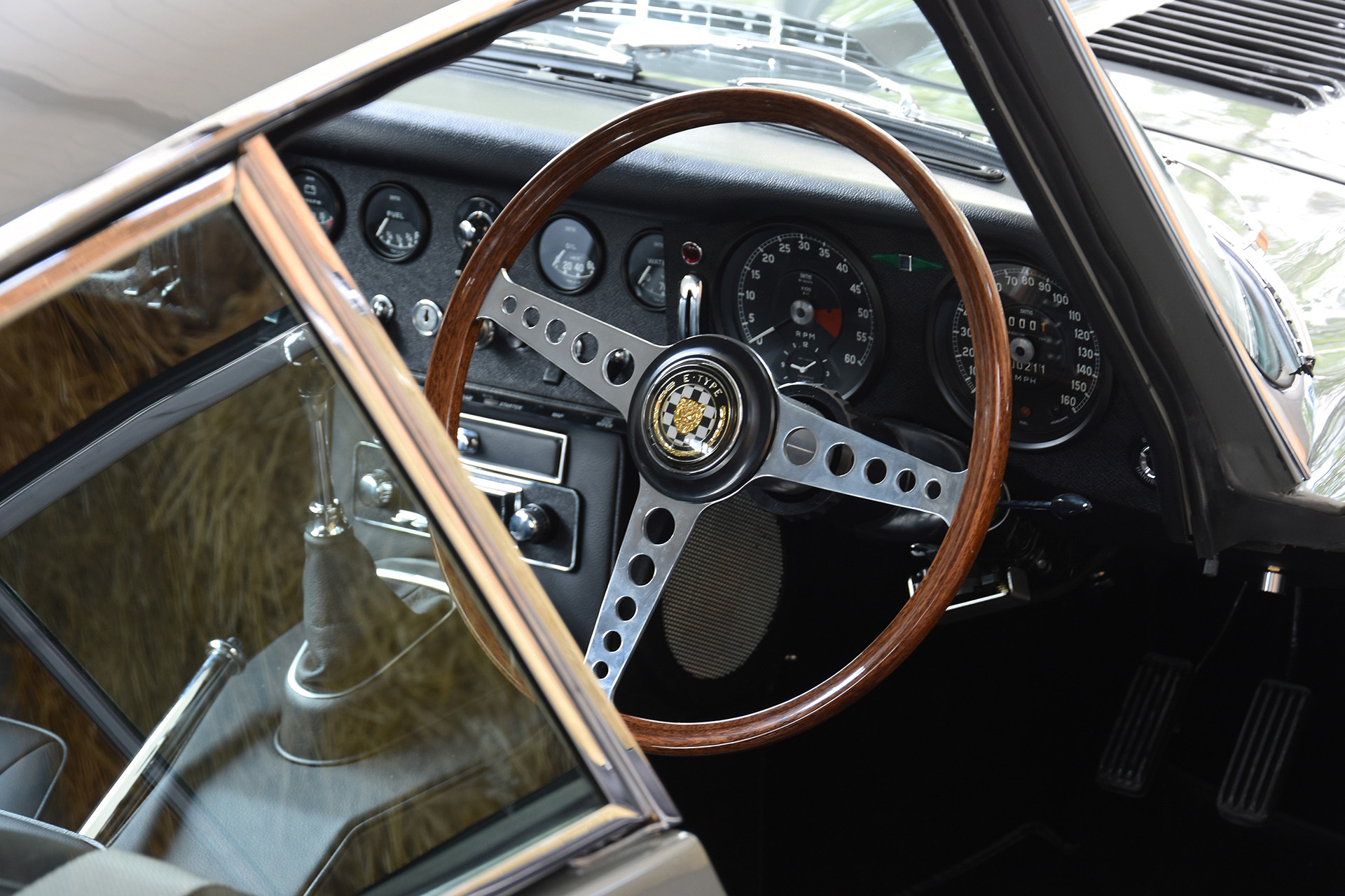 The shop then sourced original-equipment parts for the restoration while other NLA (no-longer-available) parts had to be fabricated from scratch, including a period-correct roof and floor pan. The shop’s body specialist then made sure everything was restored to a T thanks to religious use of a body alignment rig. Finally, the E-Type received a repaint in the car’s original Opalescent Silver Grey hue and then polished for over 60 hours to make sure it was as factory-accurate.