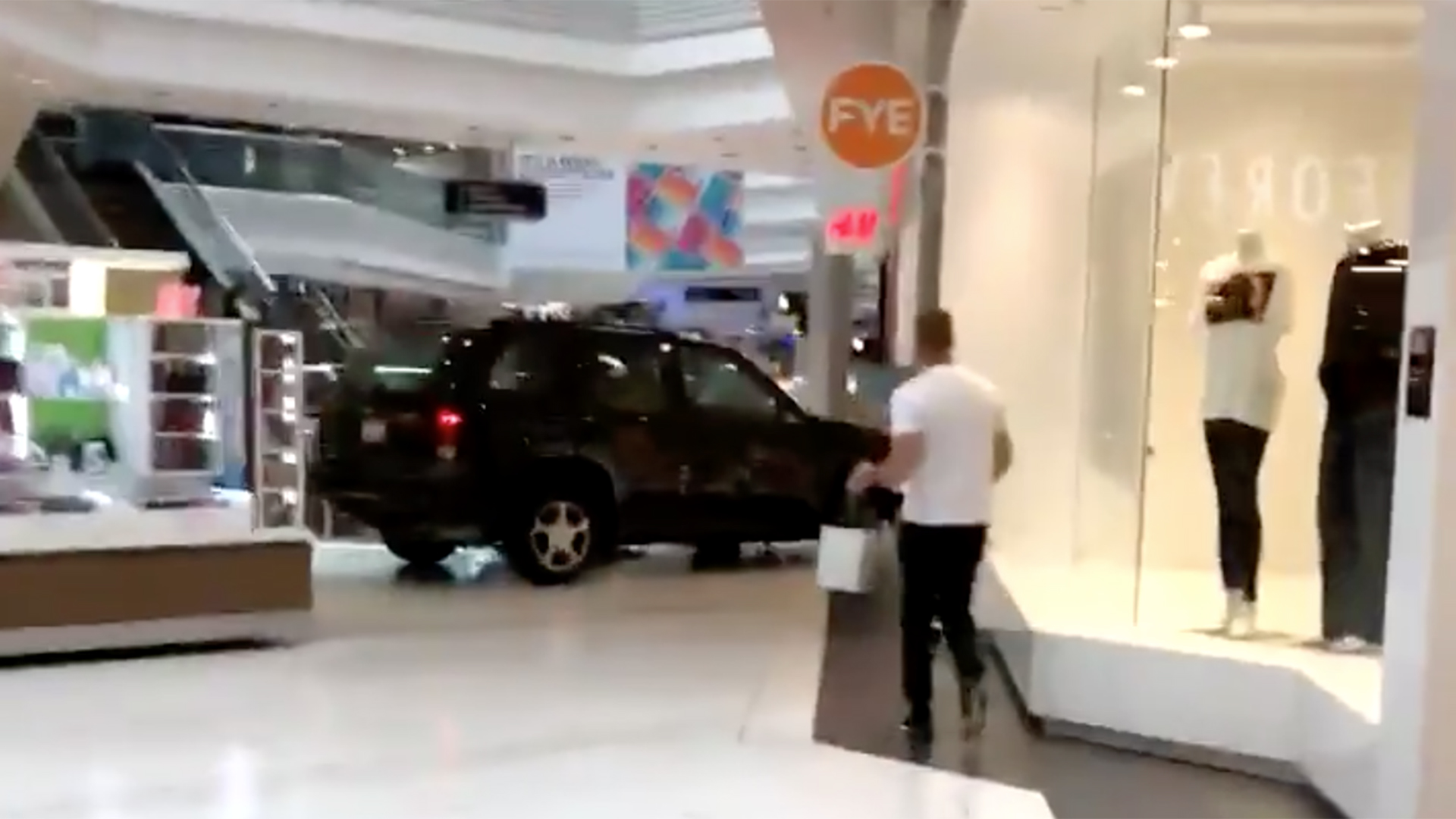 Witnesses say mall patrons ran for cover as the SUV charged through the hall. Fortunately, officers were able to arrest the driver when he tried to flee on foot, and no shots were fired. The mall has since been evacuated while the investigation is ongoing.