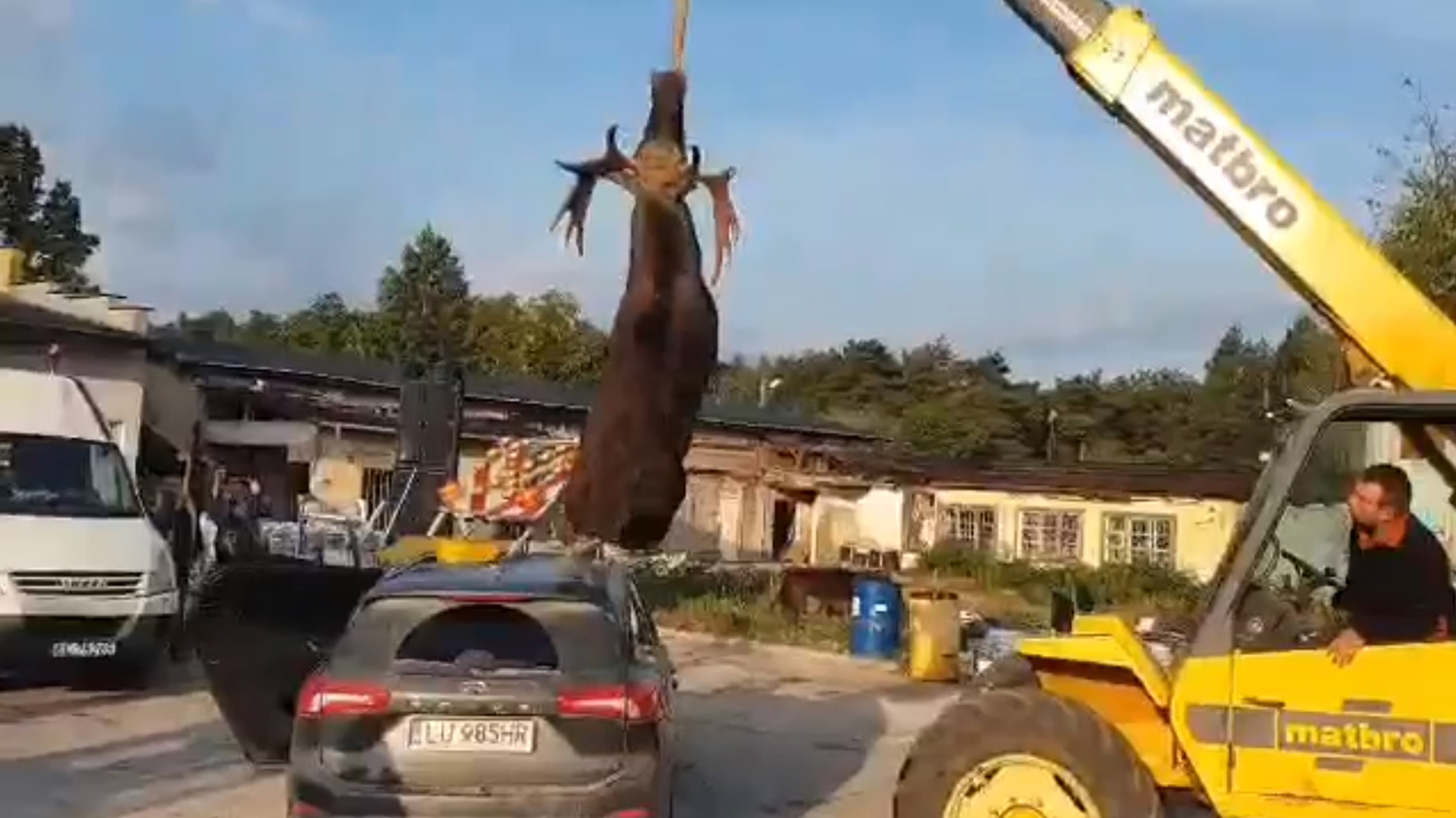 The footage shared on Facebook shows a large crane lifting the dead remains from what’s basically the cabin of the Focus. It’s unclear at what speed the collision happened, but it’s easy to see that the moose completely crushed the front end, roof, and ultimately landed on top of the driver and front passenger. Judging by the car’s Polish European Union plates, we presume this crash happened somewhere in the Nordic region of Europe, where moose sightings are common.